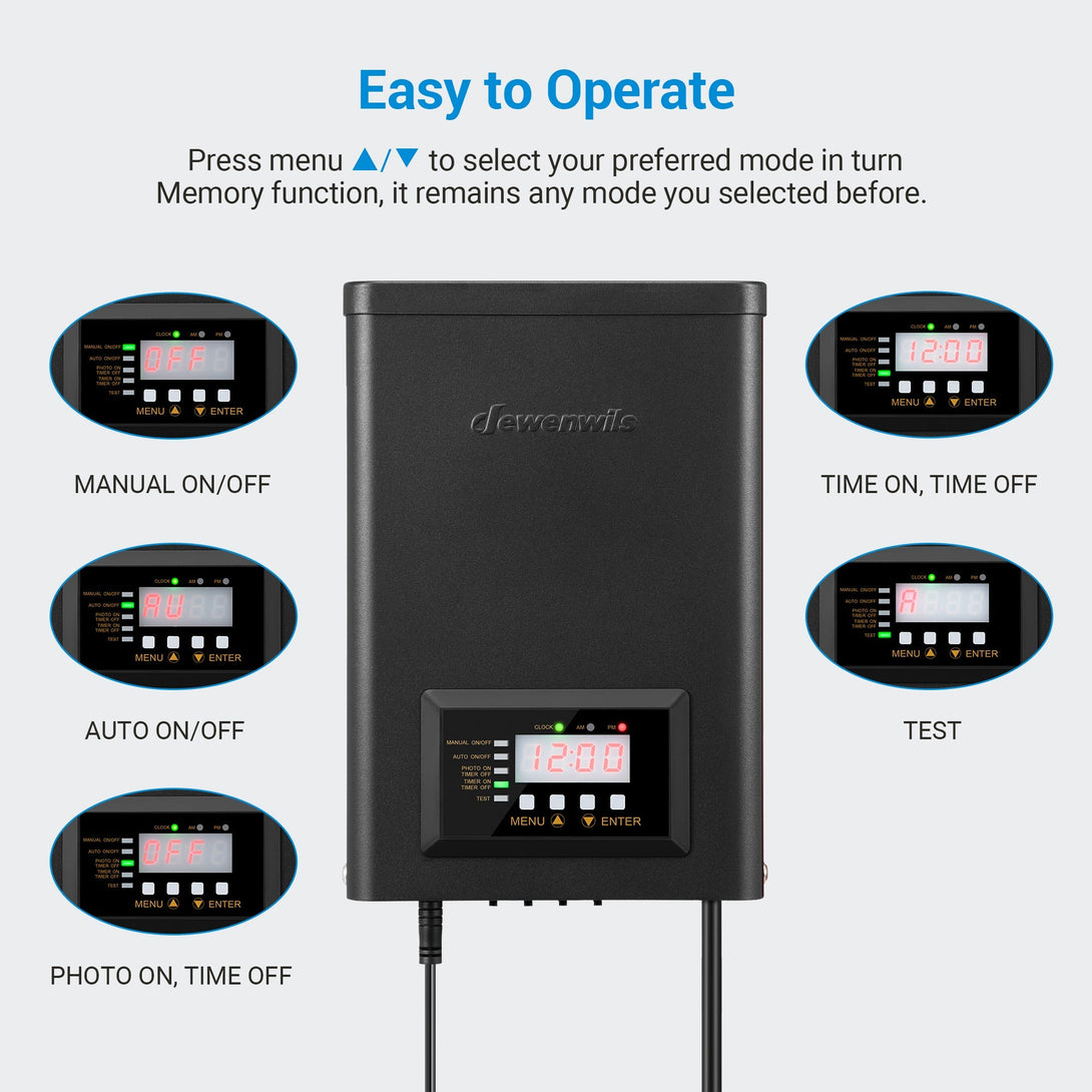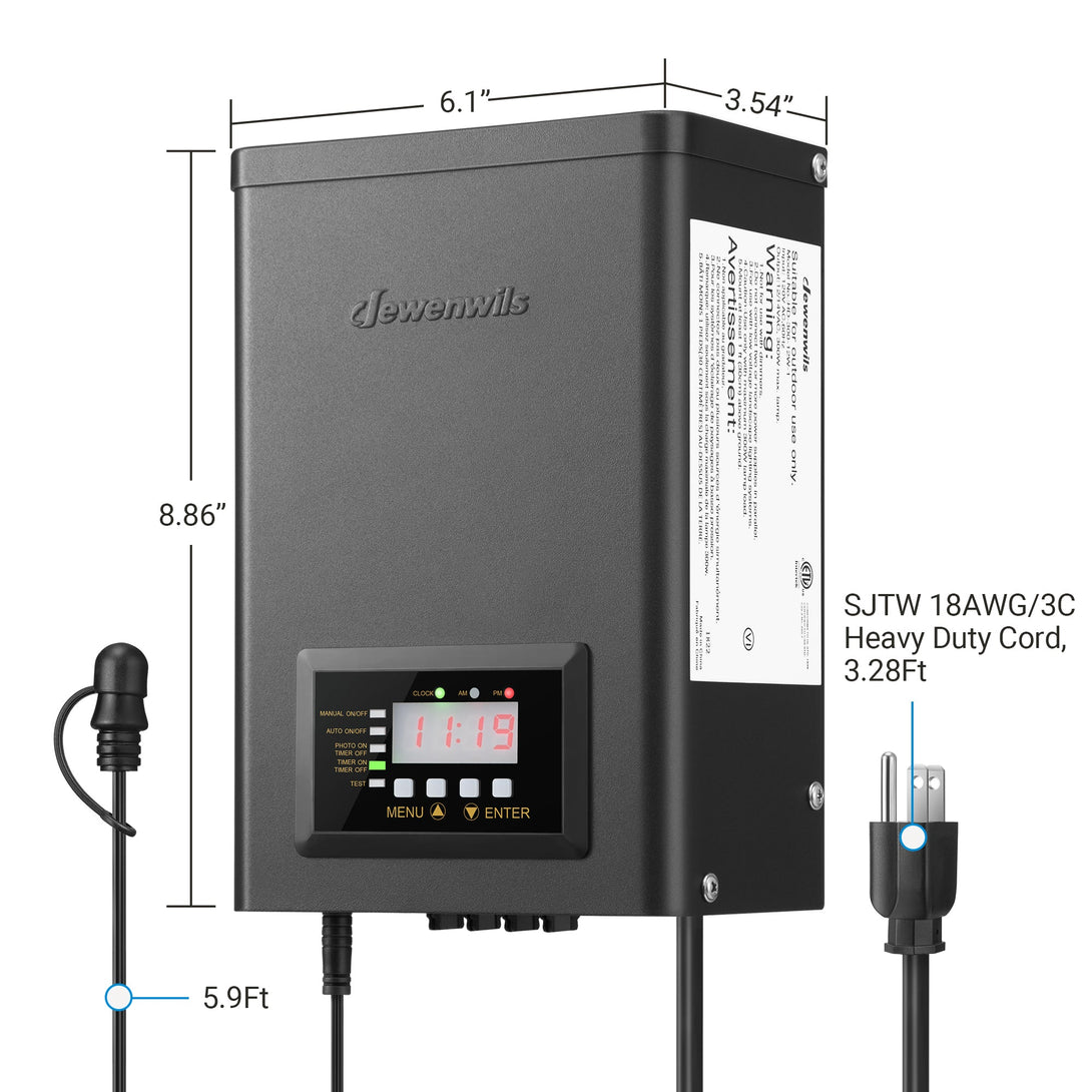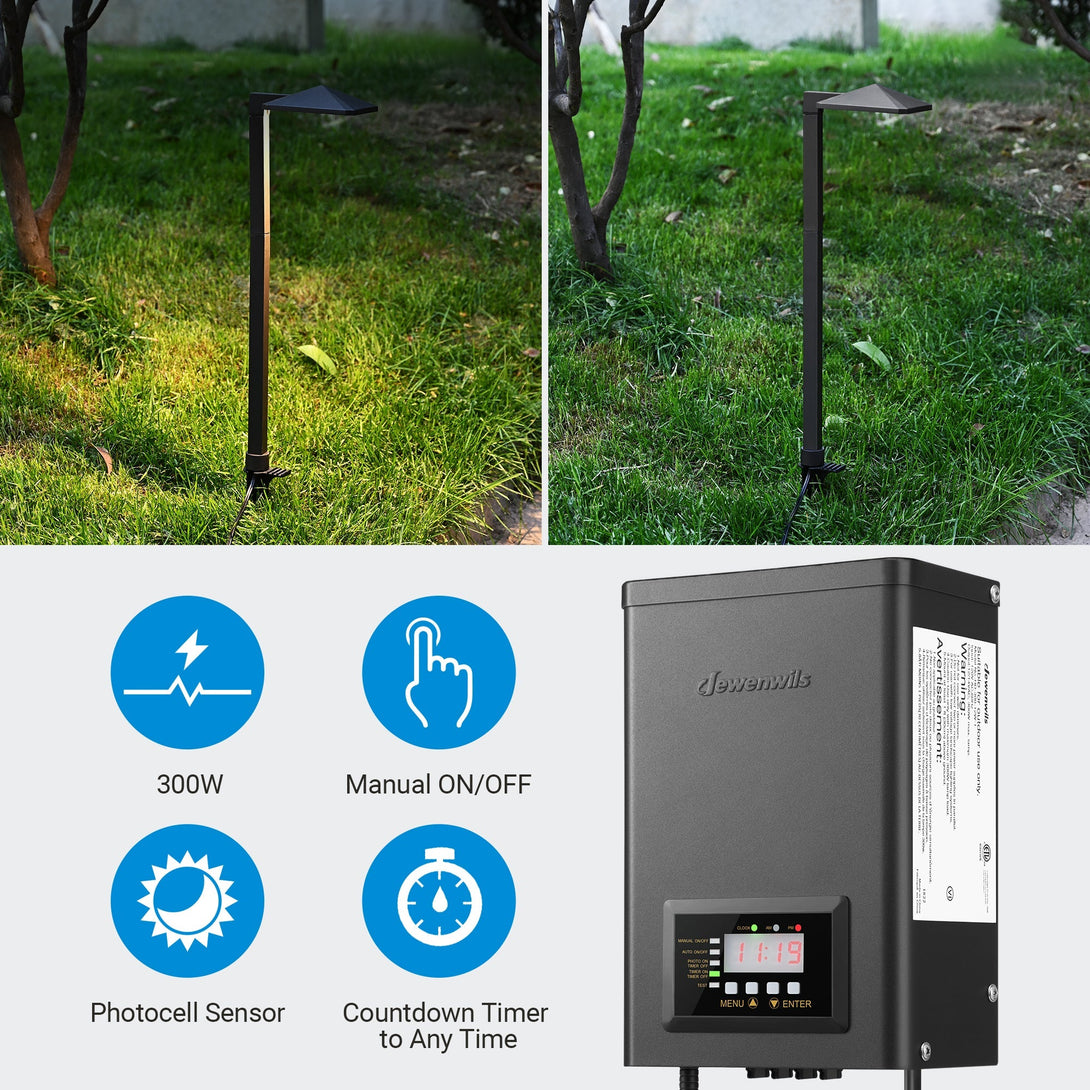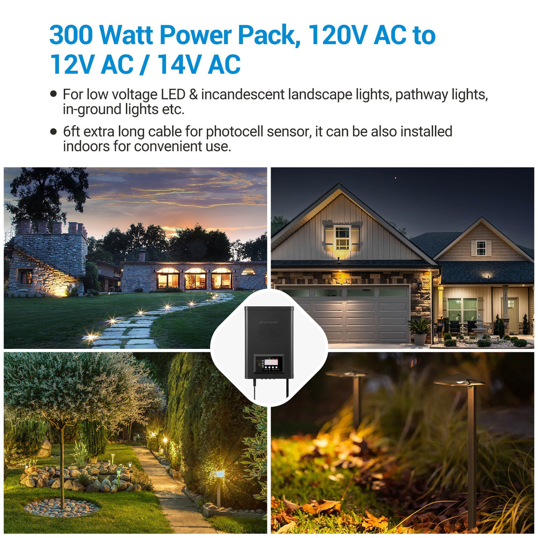 300W Low Voltage Transformer with Timer and Photocell Sensor, 120V AC to 12V/14V AC, Landscape Lighting Transformer for Spotlight, Pathway Light, Outdoor& Indoor Weatherproof-HOSL05H