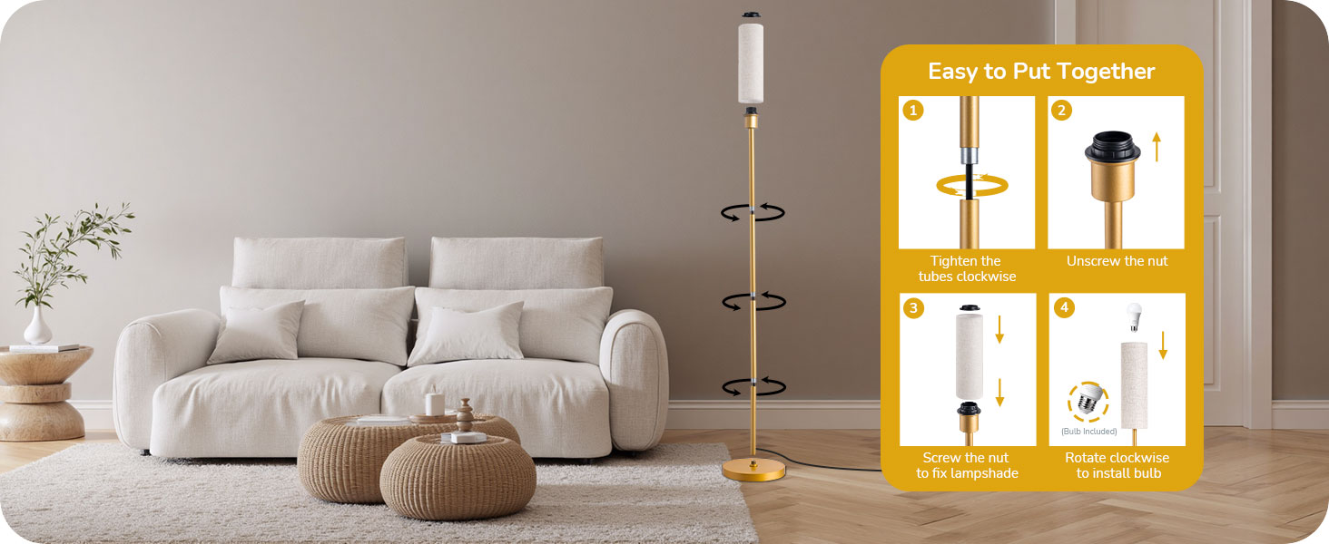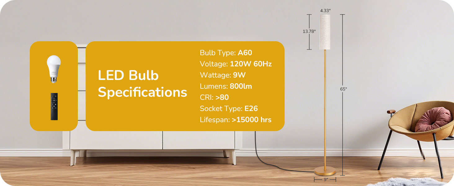 65" Tall Minimalist Traditional Floor Lamp with Magnetic Remote Control - Dimmable LED Bulb Included