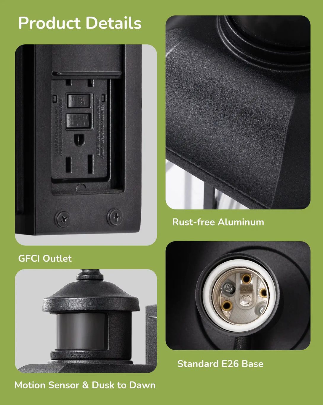 Dusk to Dawn Outdoor Wall Lights with Motion Sensor & GFCI Outlet
