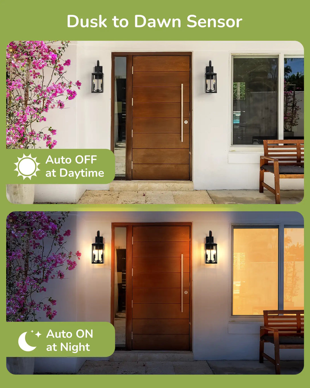 Modern Dusk-to-Dawn Outdoor Wall Sconce – Matte Black, Weatherproof