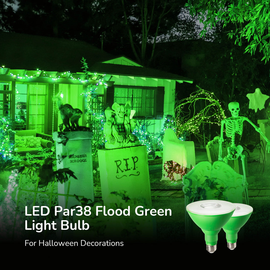 - Emits vibrant and bright light, this LED Par38 flood green light bulb covers a large lighting area with maximum visibility.