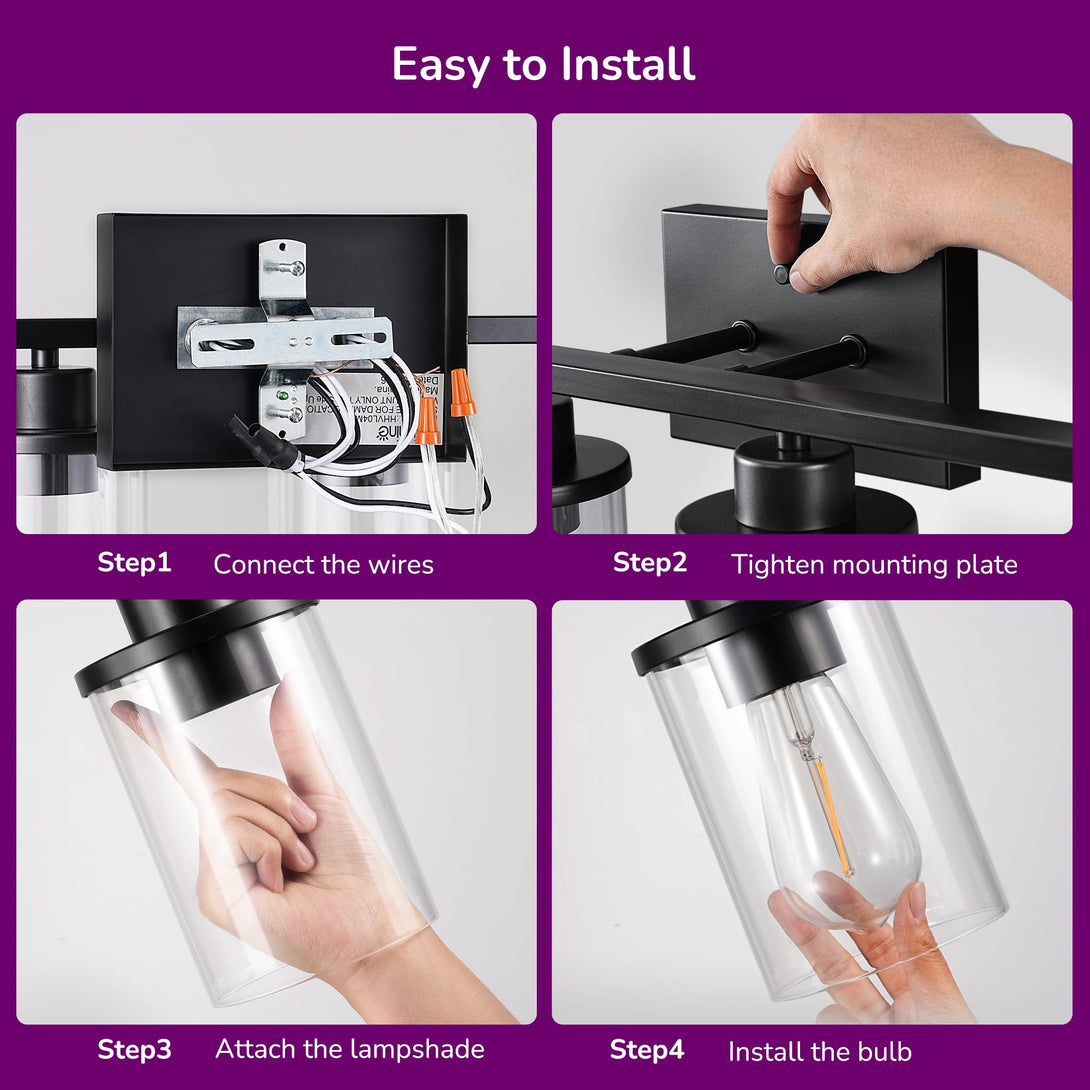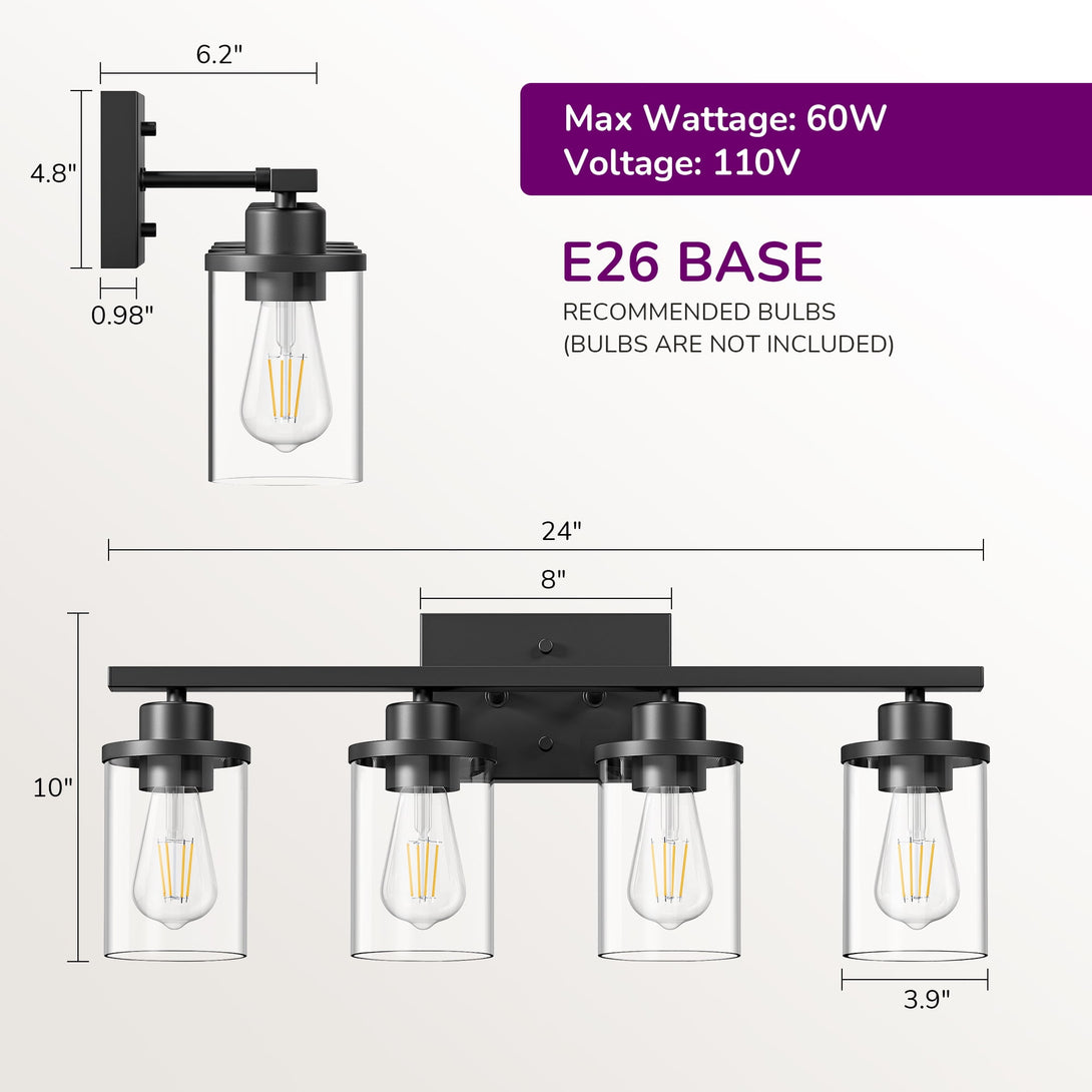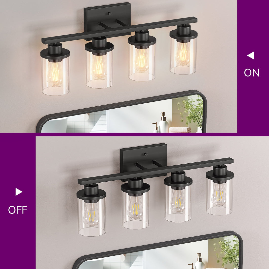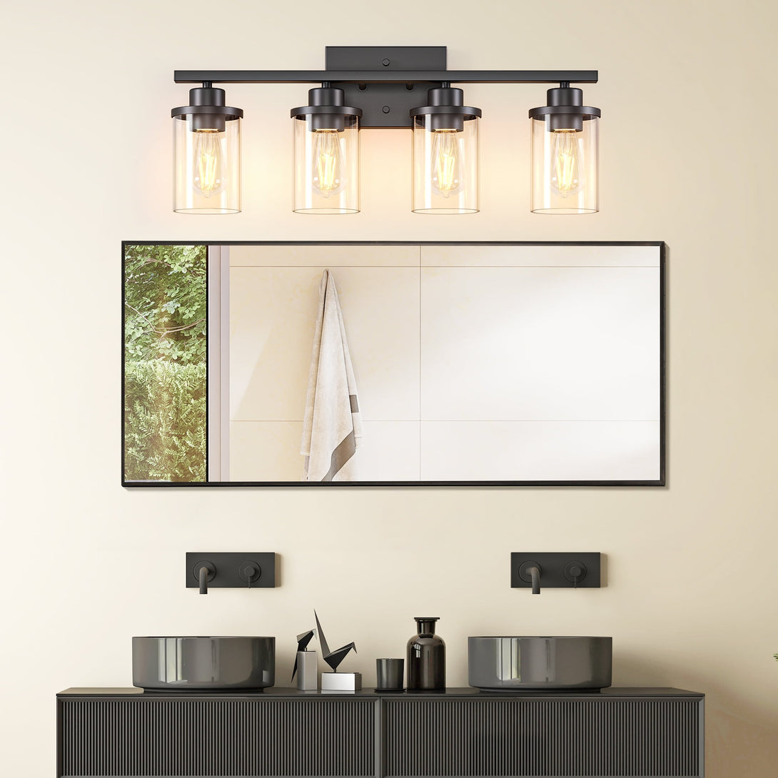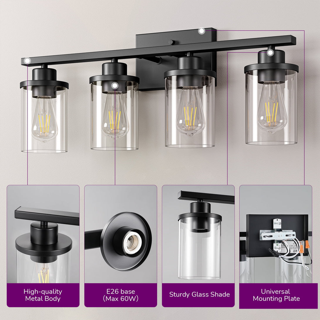 EDISHINE 4-Light Modern Black Bathroom Light Fixtures with Glass Shades