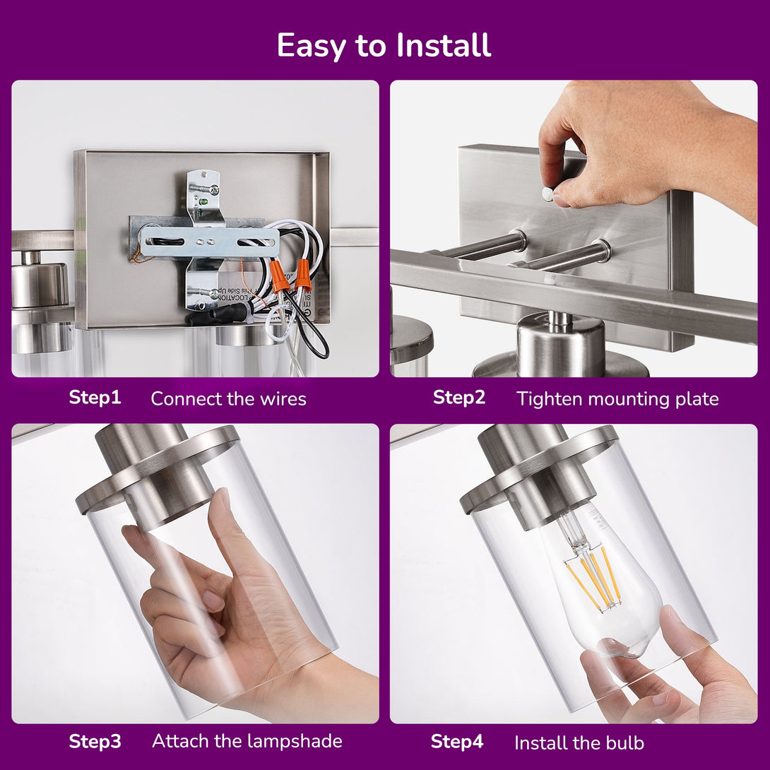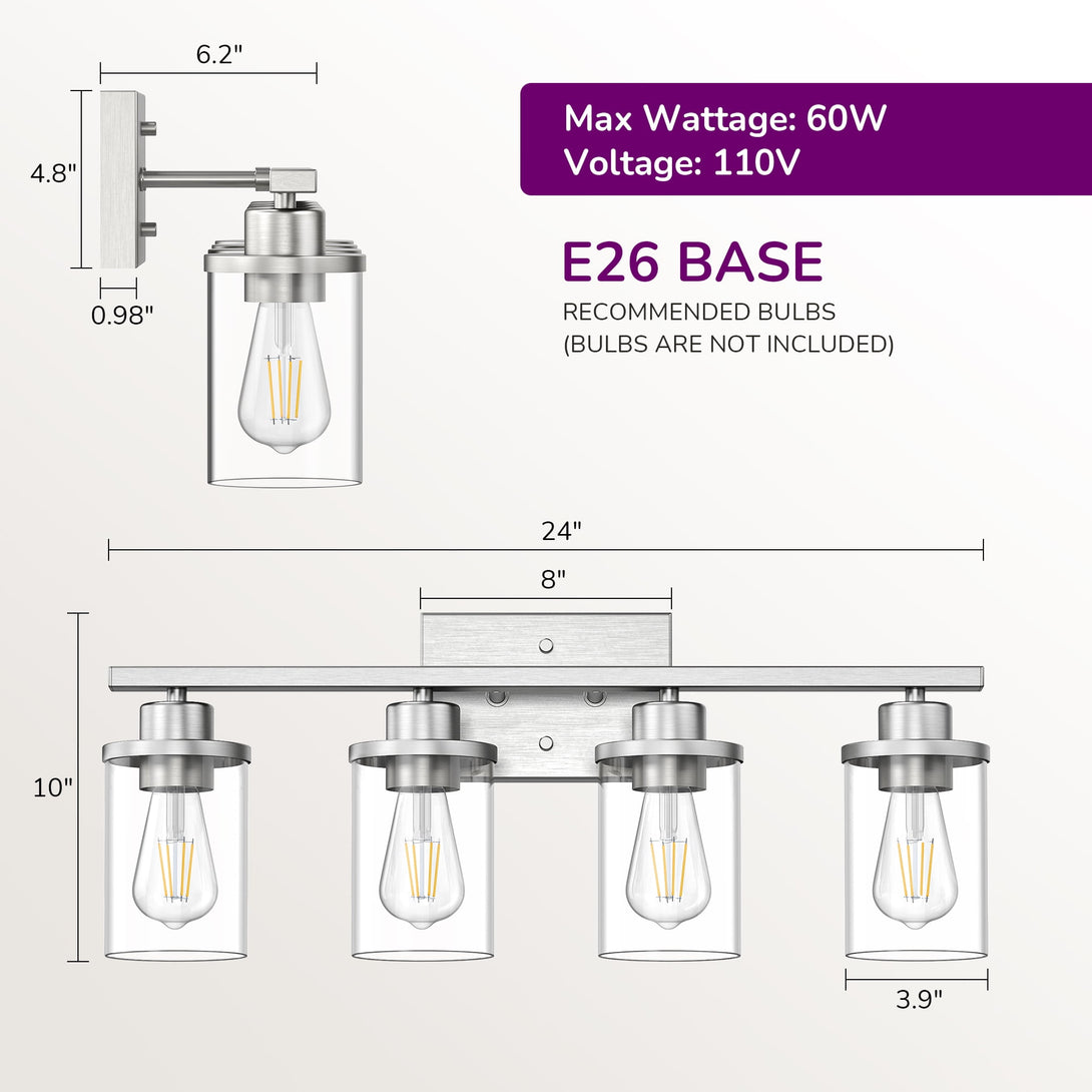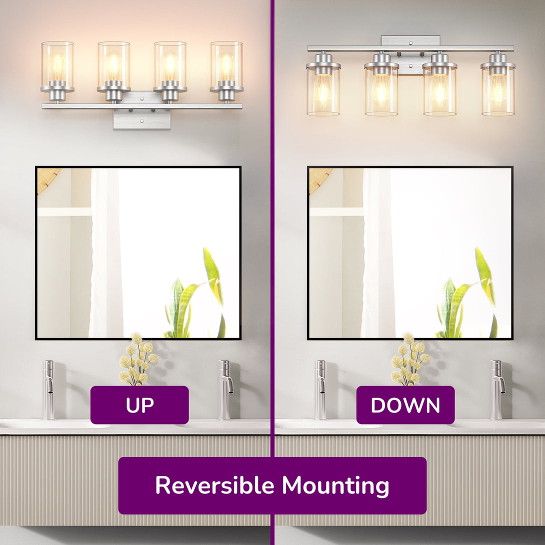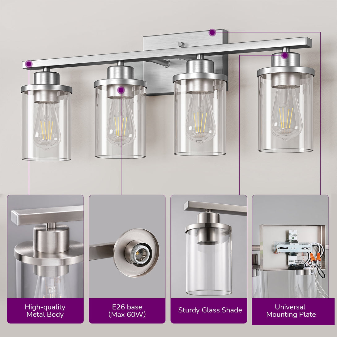 EDISHINE 4-Light Wall Lights for Bathroom Mirror Vanity Lights with Glass Shades E26 Base