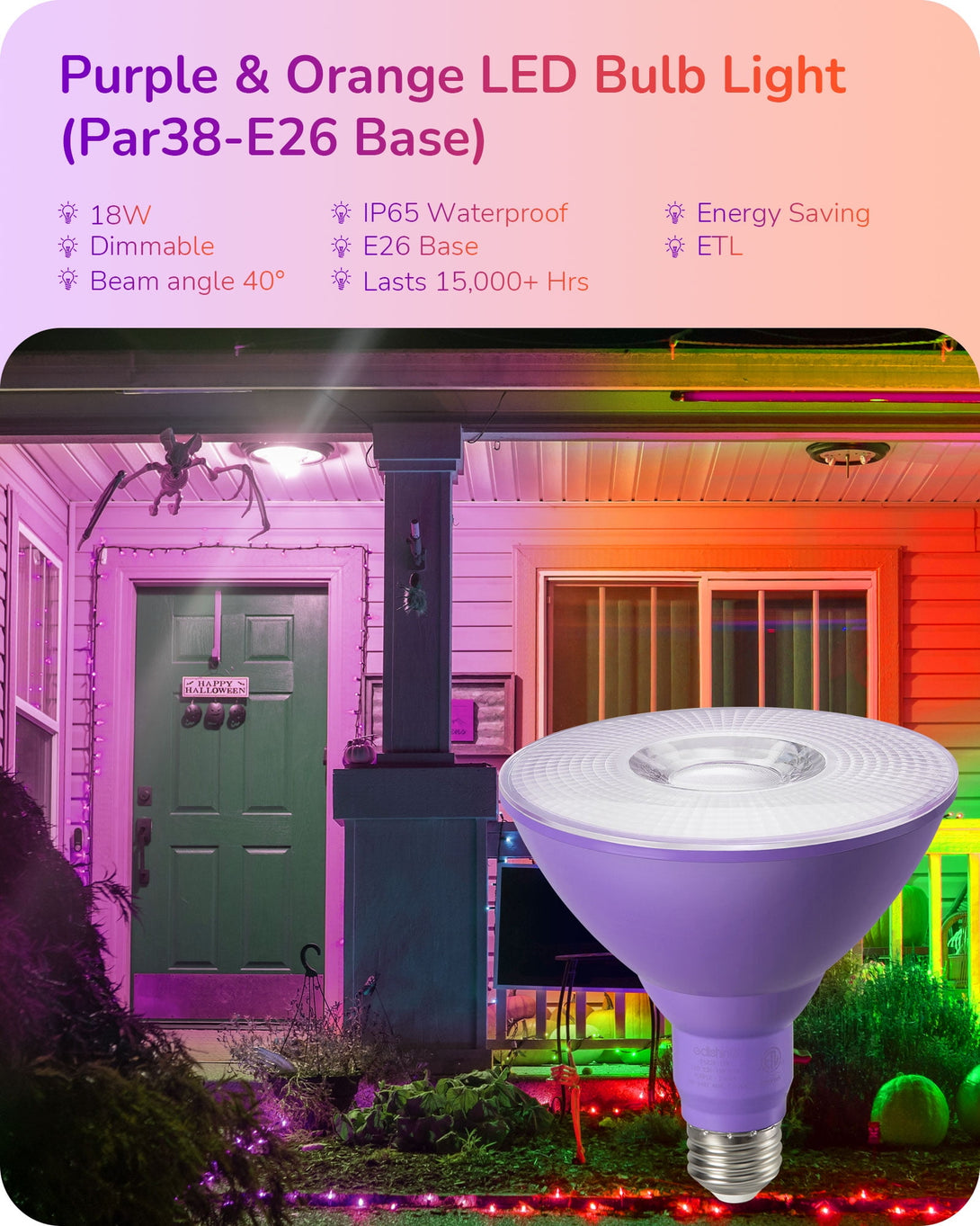EDISHINE 4 Pack Halloween PAR38 Purple & Orange LED Flood Light Bulbs Outdoor, Dimmable, Purple Orange LED Light Bulb, 18W(120W Equivalent), Light Bulb for Halloween Decorations, E26 Base, ETL Listed