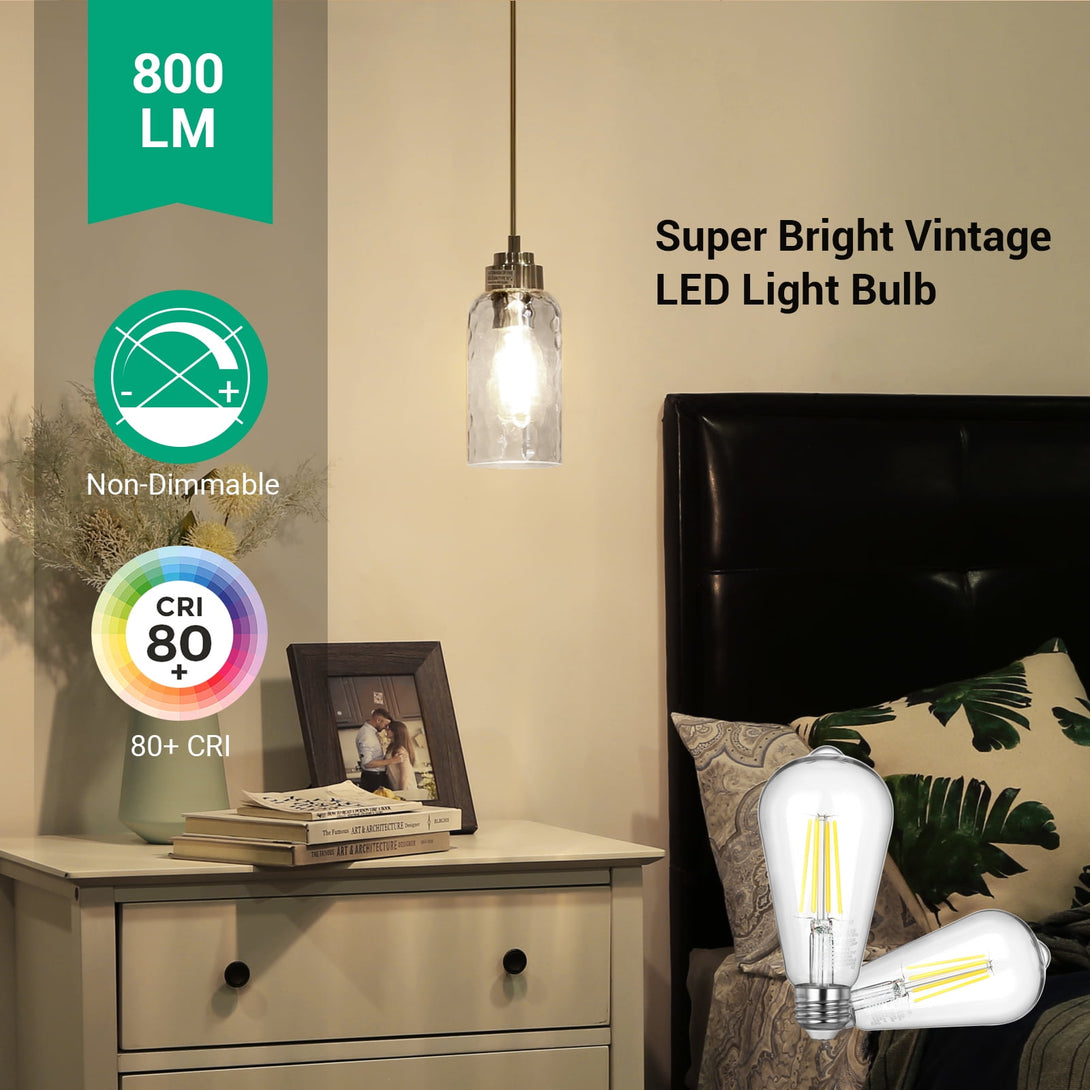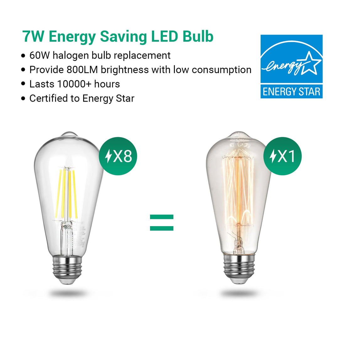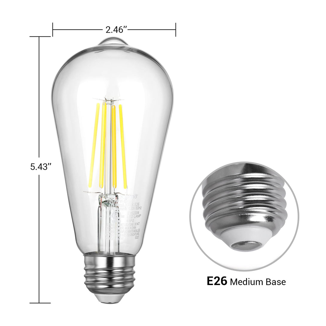 EDISHINE 4 Pack LED Vintage Light Bulb, 4000K, ST19 60W Daylight Classic Filament, E26 Base, Non-Dimmable