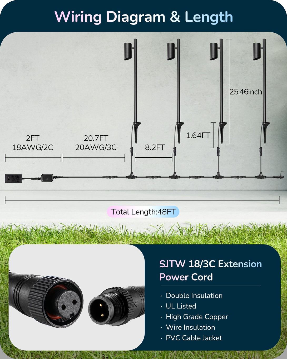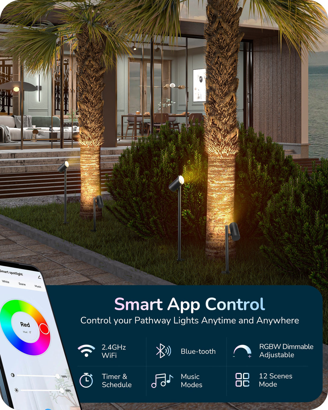 EDISHINE 48ft 12V IP67 Smart Low Voltage Landscape Lights (4 Pack)-HGSL33A