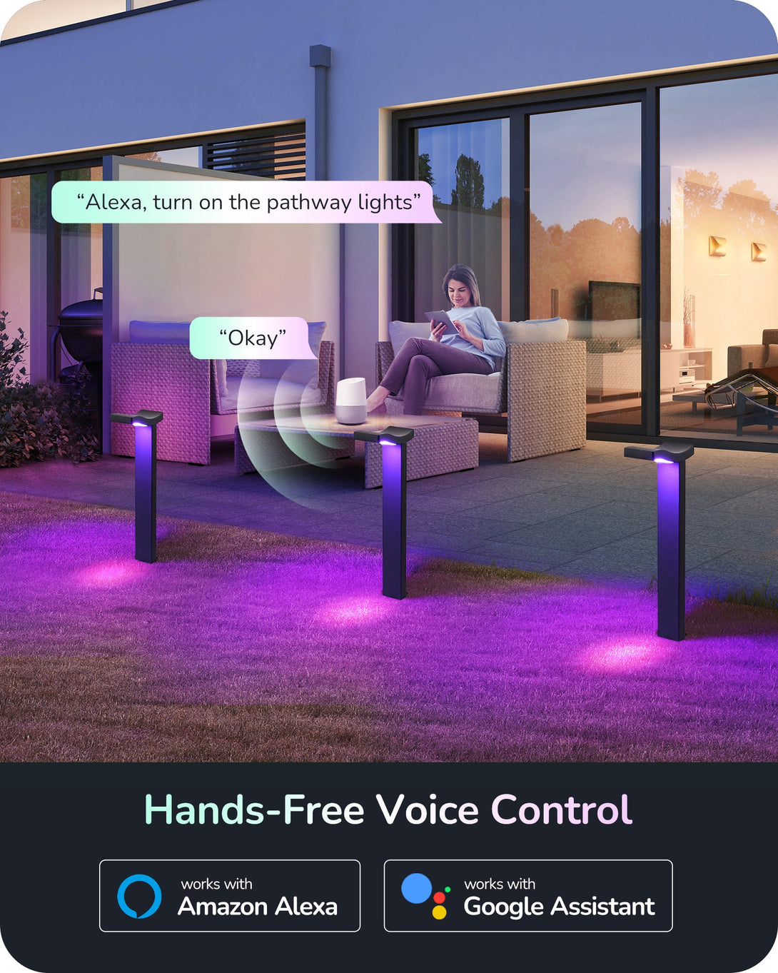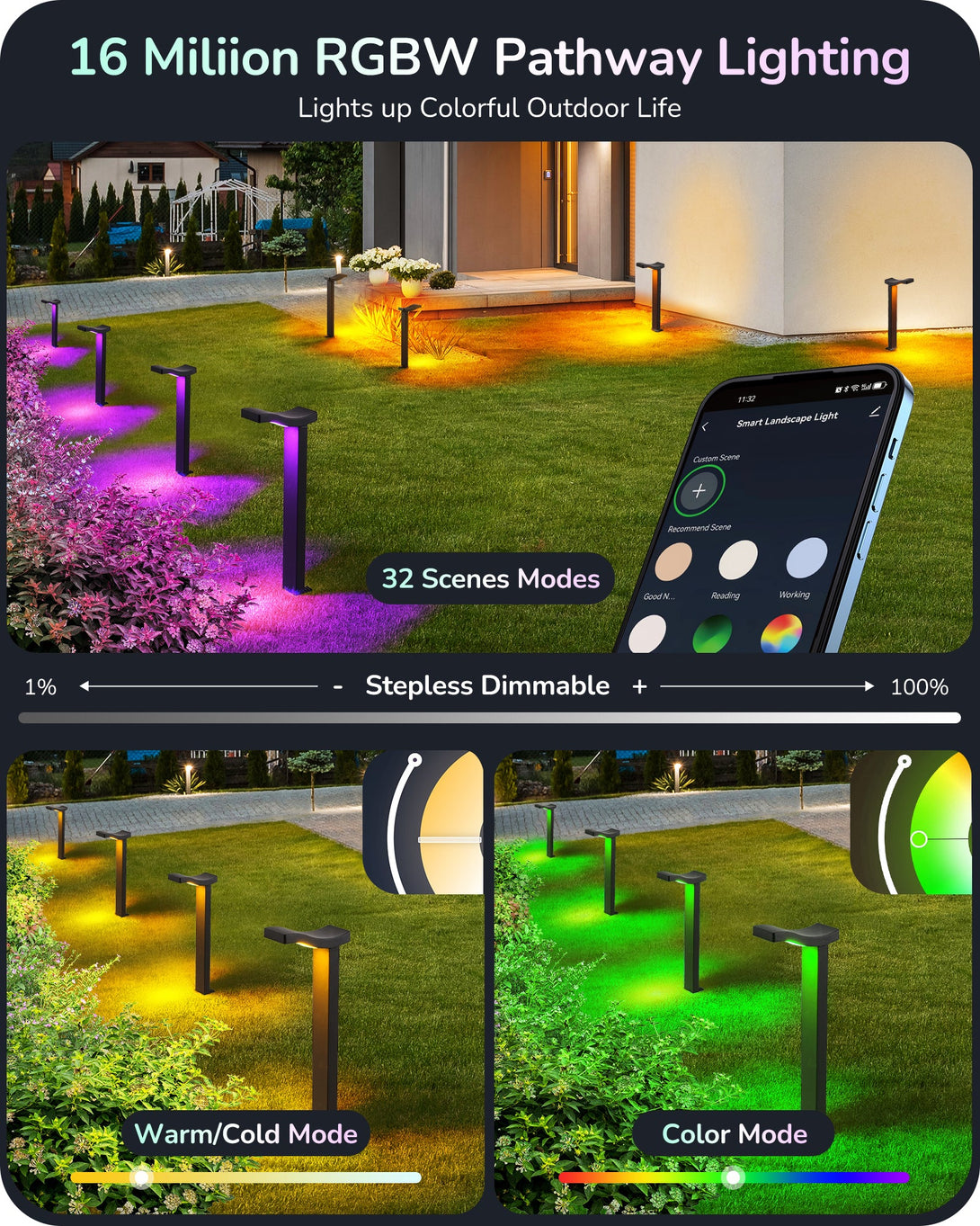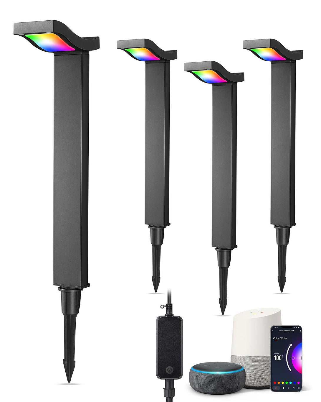 EDISHINE 48FT Smart Christmas Pathway Lights, RGBW 350LM 24V 36W Low Voltage LED Landscape Lighting, 4PCS-HGSL31A