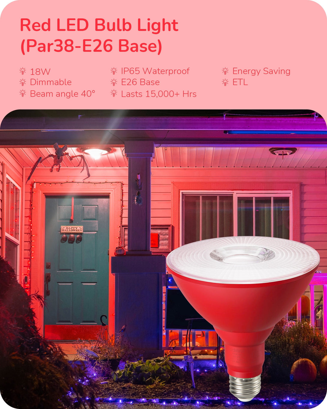 EDISHINE 4Pack Par38 LED Orange Outdoor Flood Light Bulbs, 18W Equivalent 120W, Dimmable, E26 Base, UL Listed