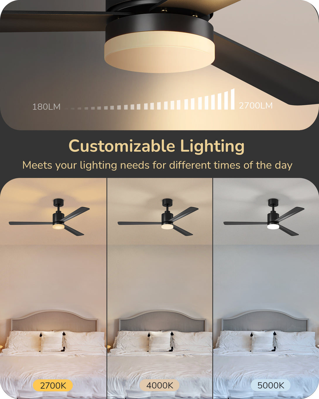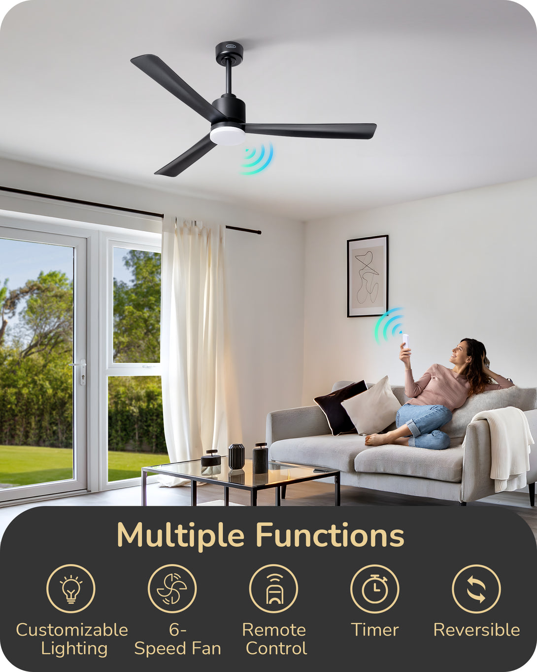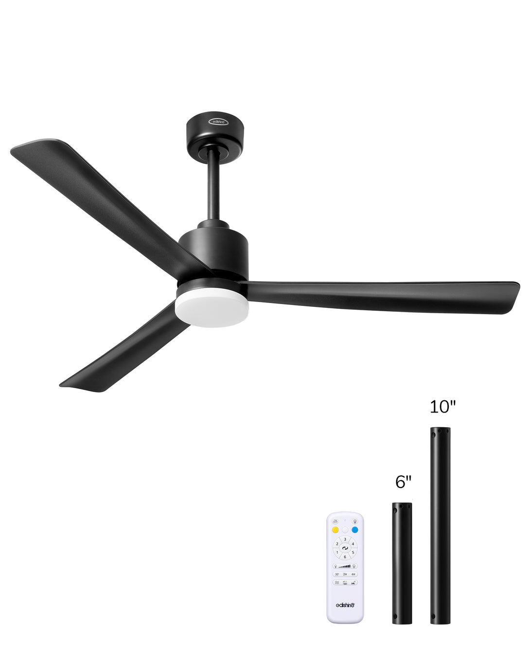 EDISHINE 52" Modern Black Ceiling Fans with Lights-HCFM03A