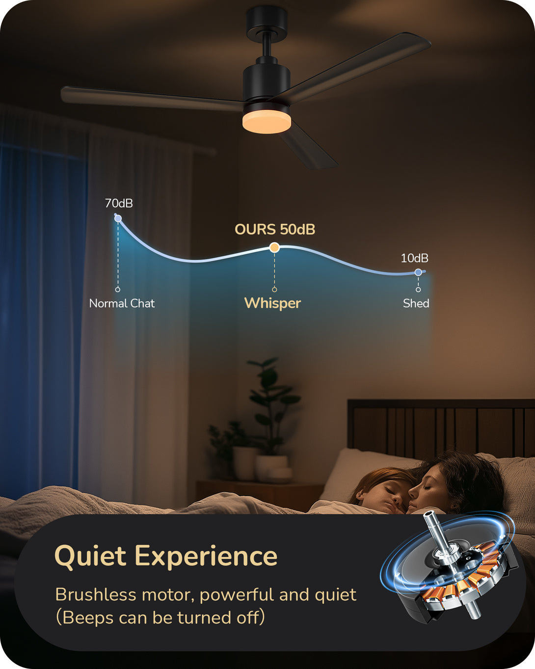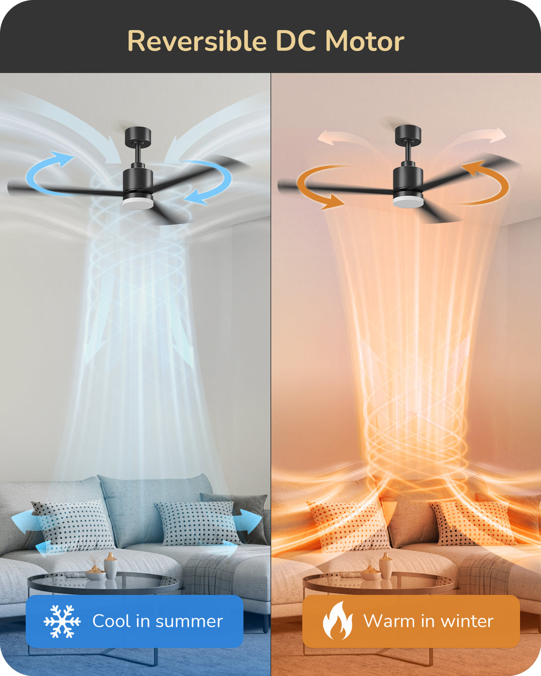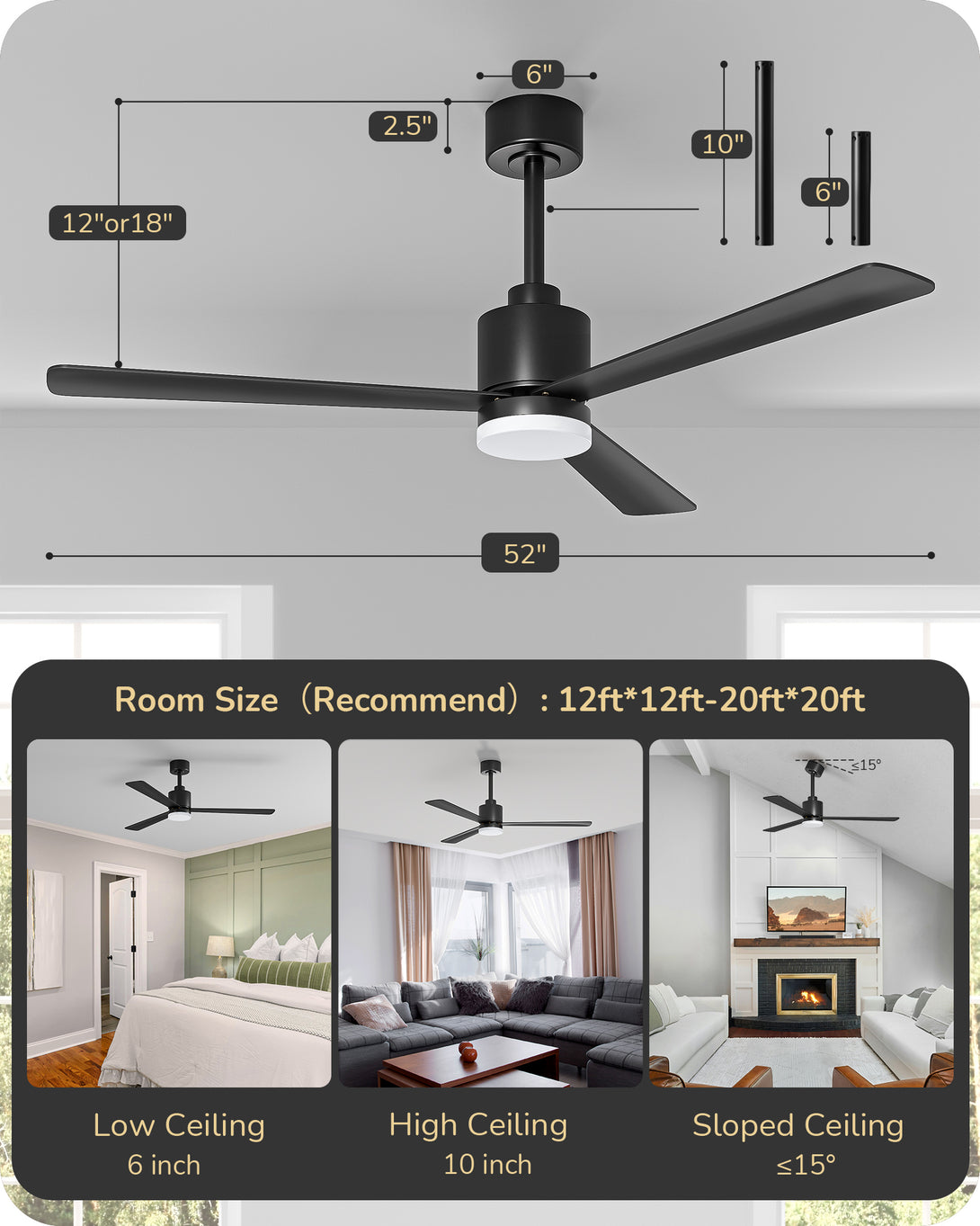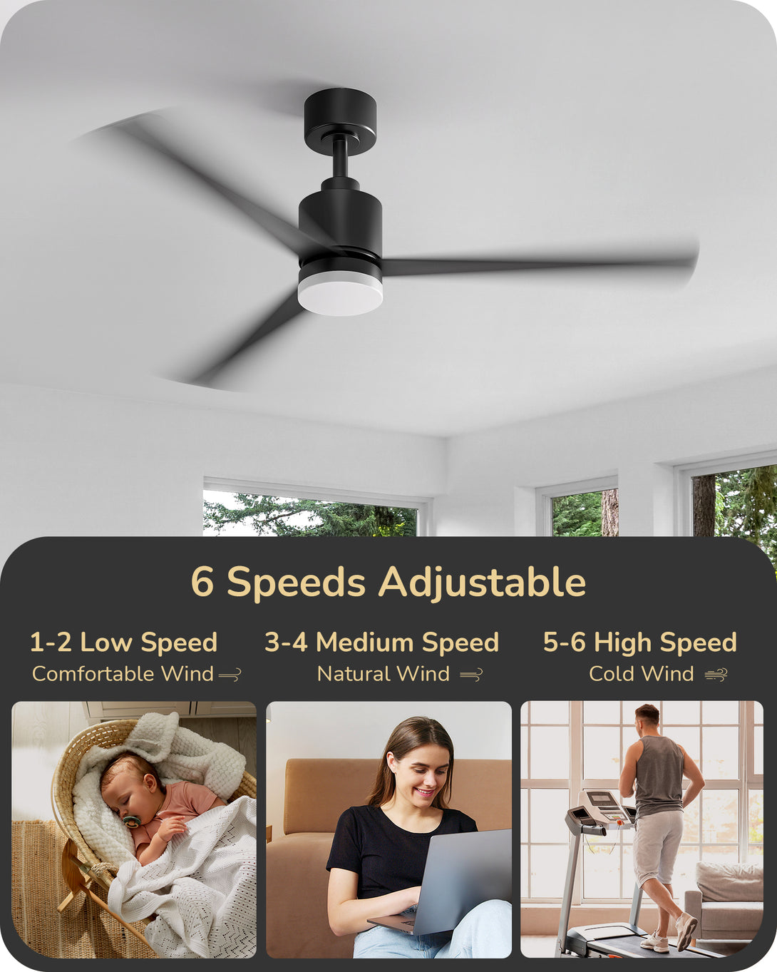 EDISHINE 52" Modern Black Ceiling Fans with Lights-HCFM03A