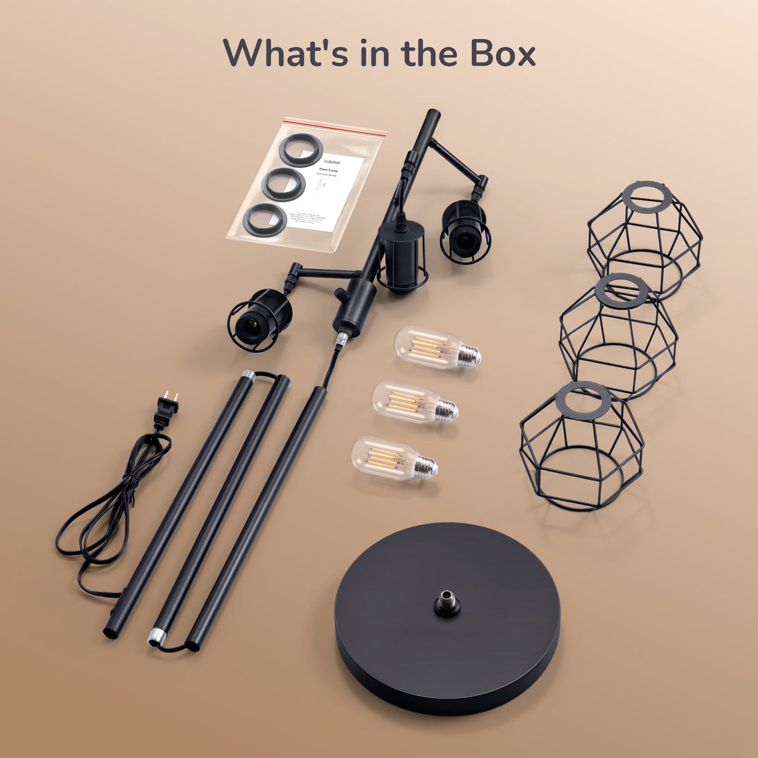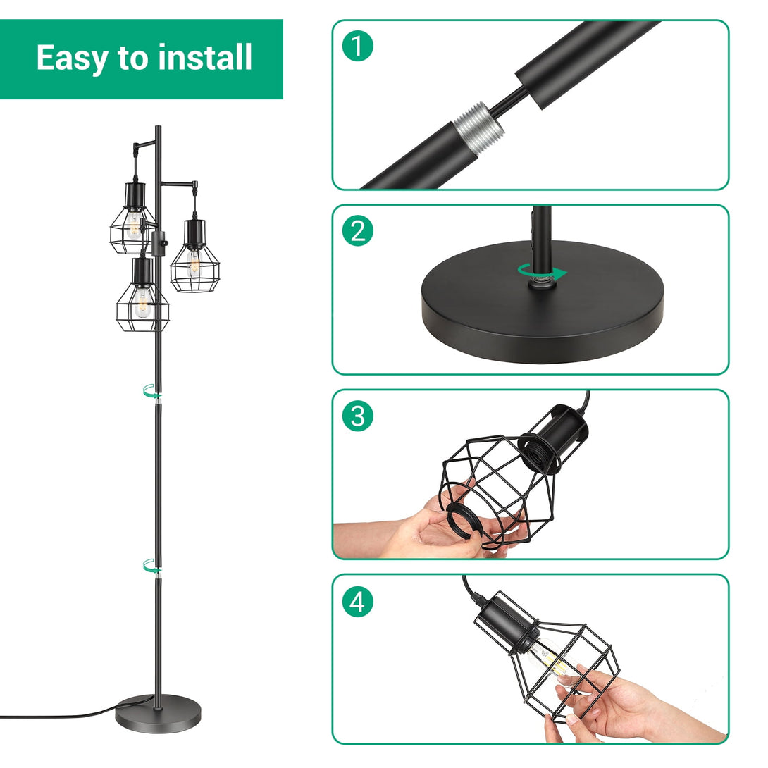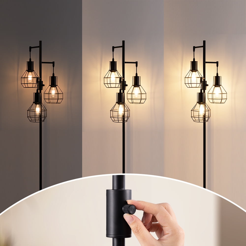 EDISHINE 65IN Farmhouse Industrial Black Floor Lamps for Living Room, Dimmable, Metal Standing Tree Lamp for Bedroom, Office, Home Decor, Lighting, 3 LED Bulb Included