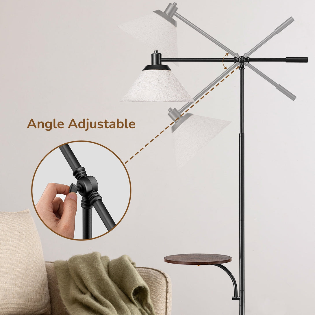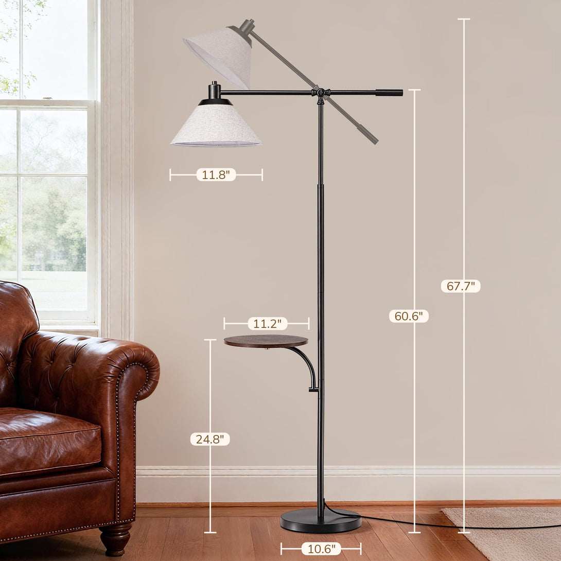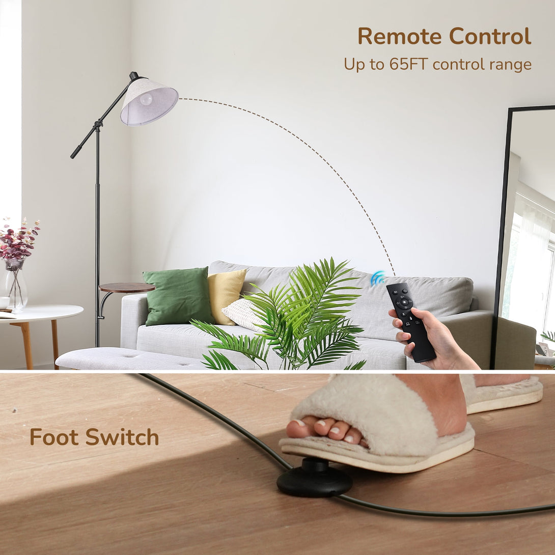 EDISHINE 68" Floor Lamp with Table for Living Room, Height Adjustable, 5CCT, Dimmable, Remote Contronl, Brown Wood Grain Tray, Black Standing Light with Linen Shade, LED Light Bulb In