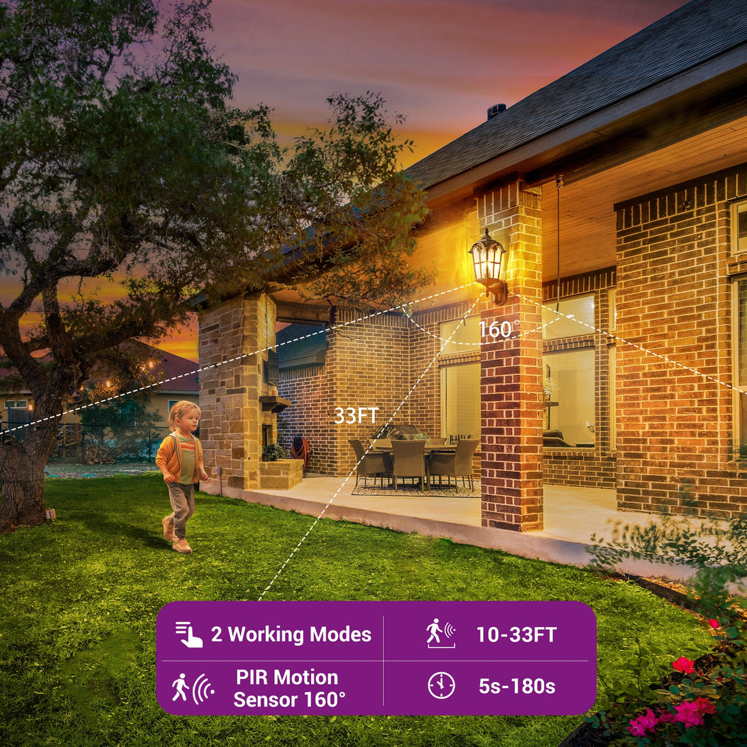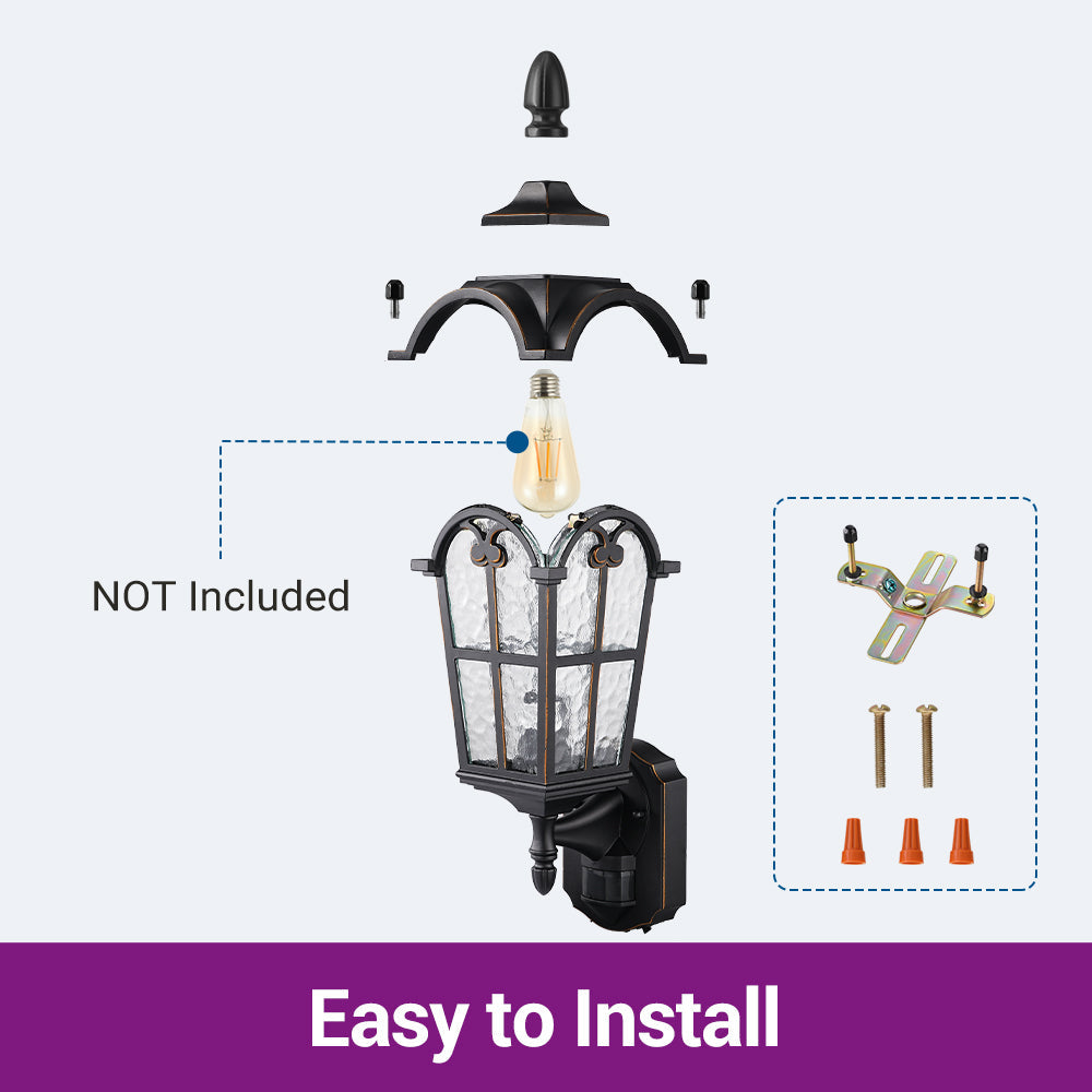 Motion & Dusk-to-Dawn Outdoor Wall Lantern – Black/Gold Weatherproof Sconce