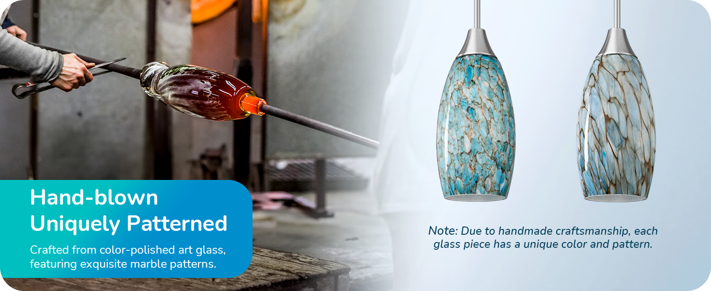 Note: This glass light shade fixture is handblown unique pattern art glass, due to handmade craftsmanship, each piece of blown glass will vary in color and pattern.