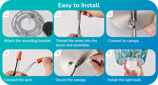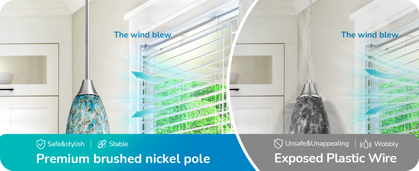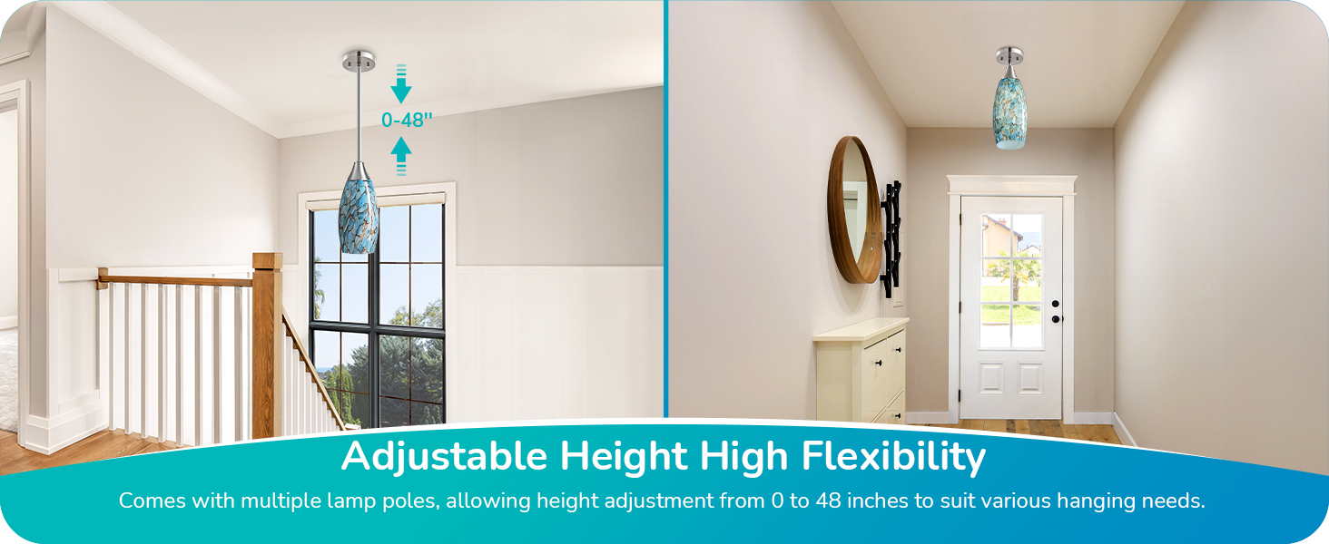 【Adjustable Height】Equipped with three 12-inch and two 6-inch metal rods, unlike other similar product, this hanging light is more durable and less prone to swaying; 0-48 inches adjustable roads meet more hanging height, adaptable to different scenarios and fully satisfying your needs