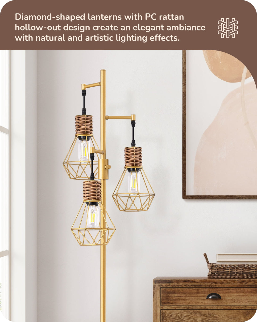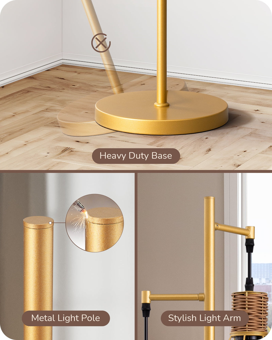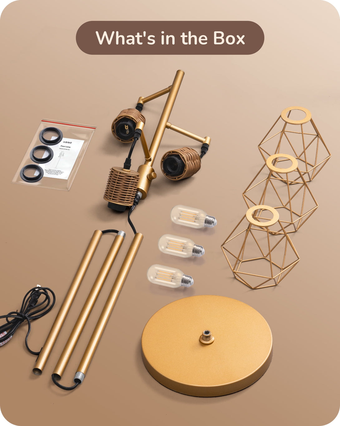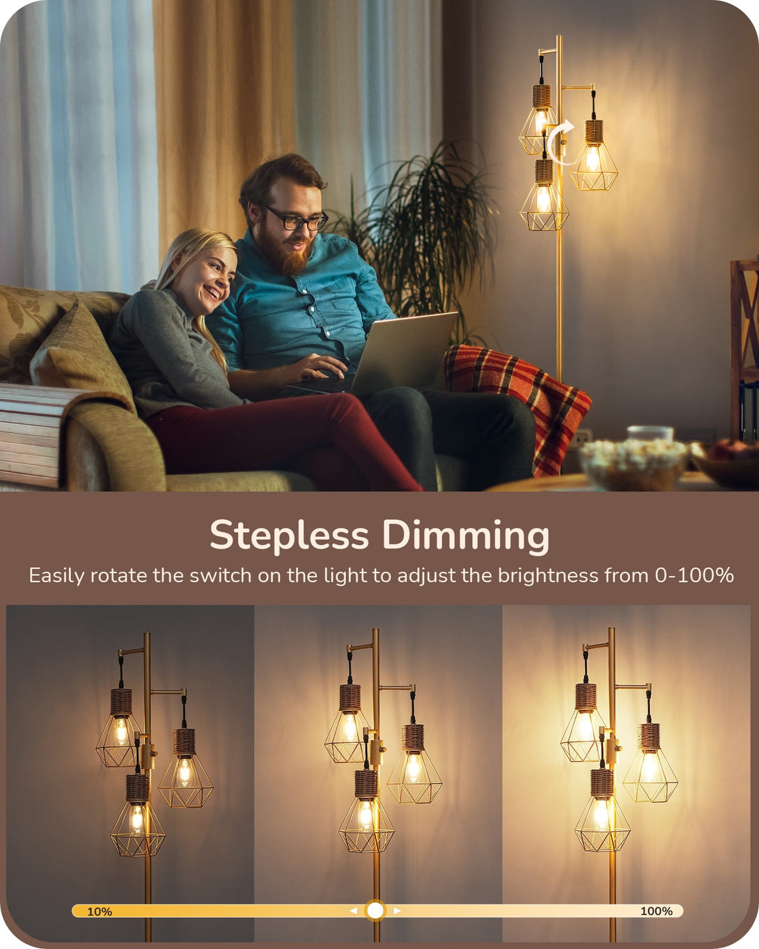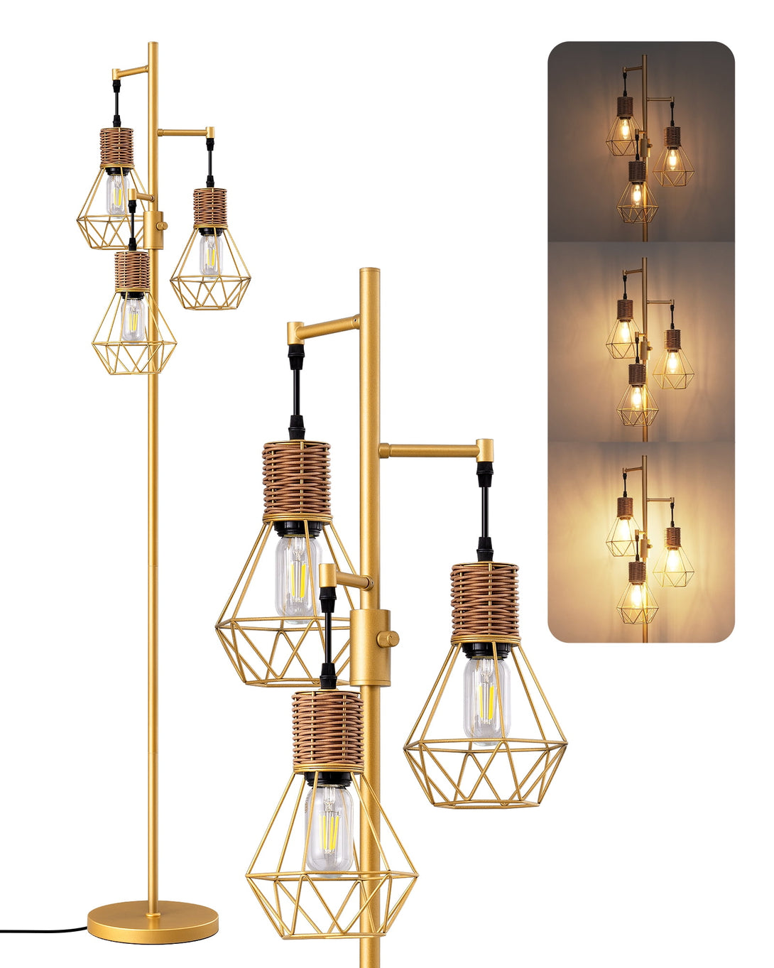 EDISHINE Industrial Floor Lamps for Living Room Clearance, Dimmable, Metal Standing Tree Lamp for Bedroom, Office, Home Decor, LED Bulb Included, Gold
