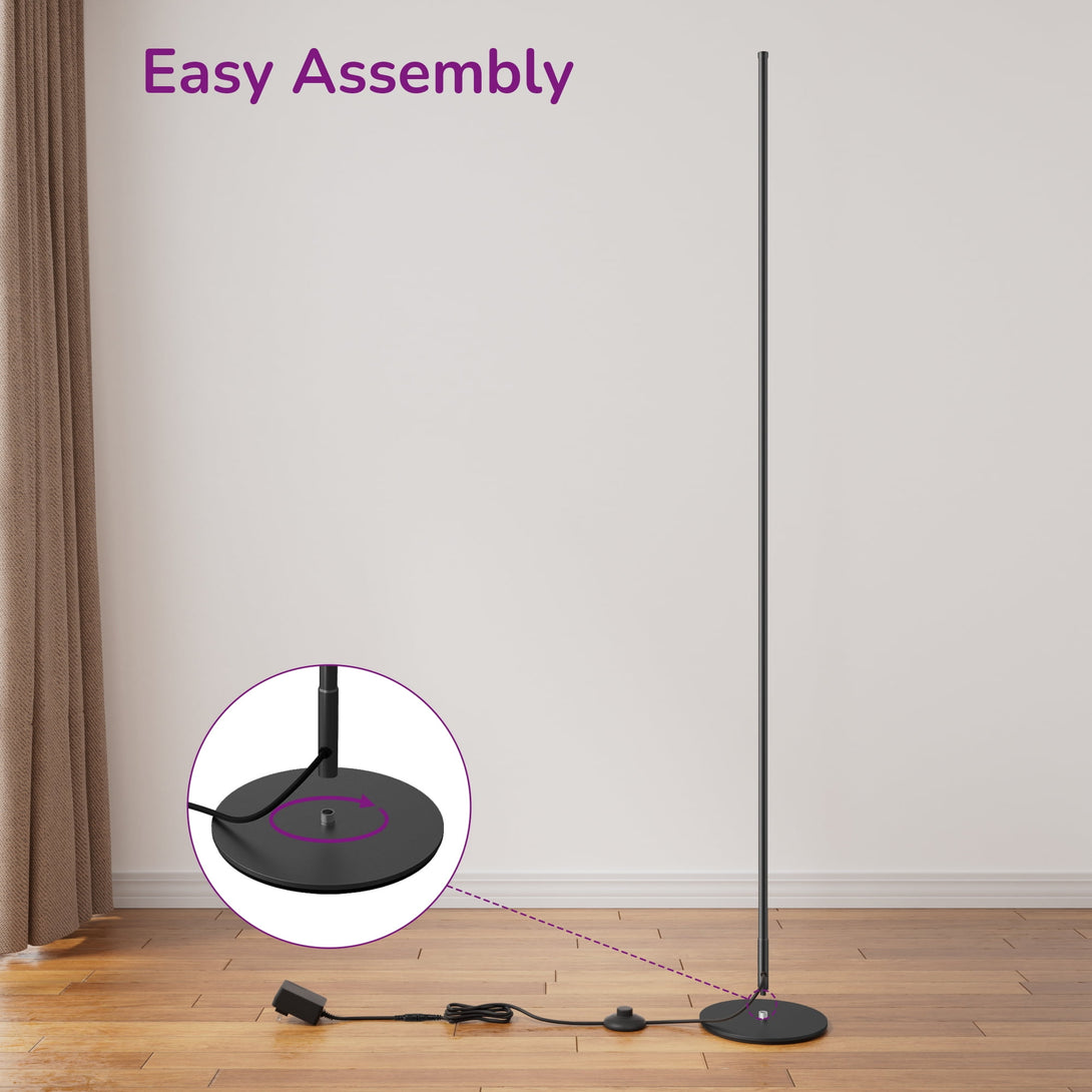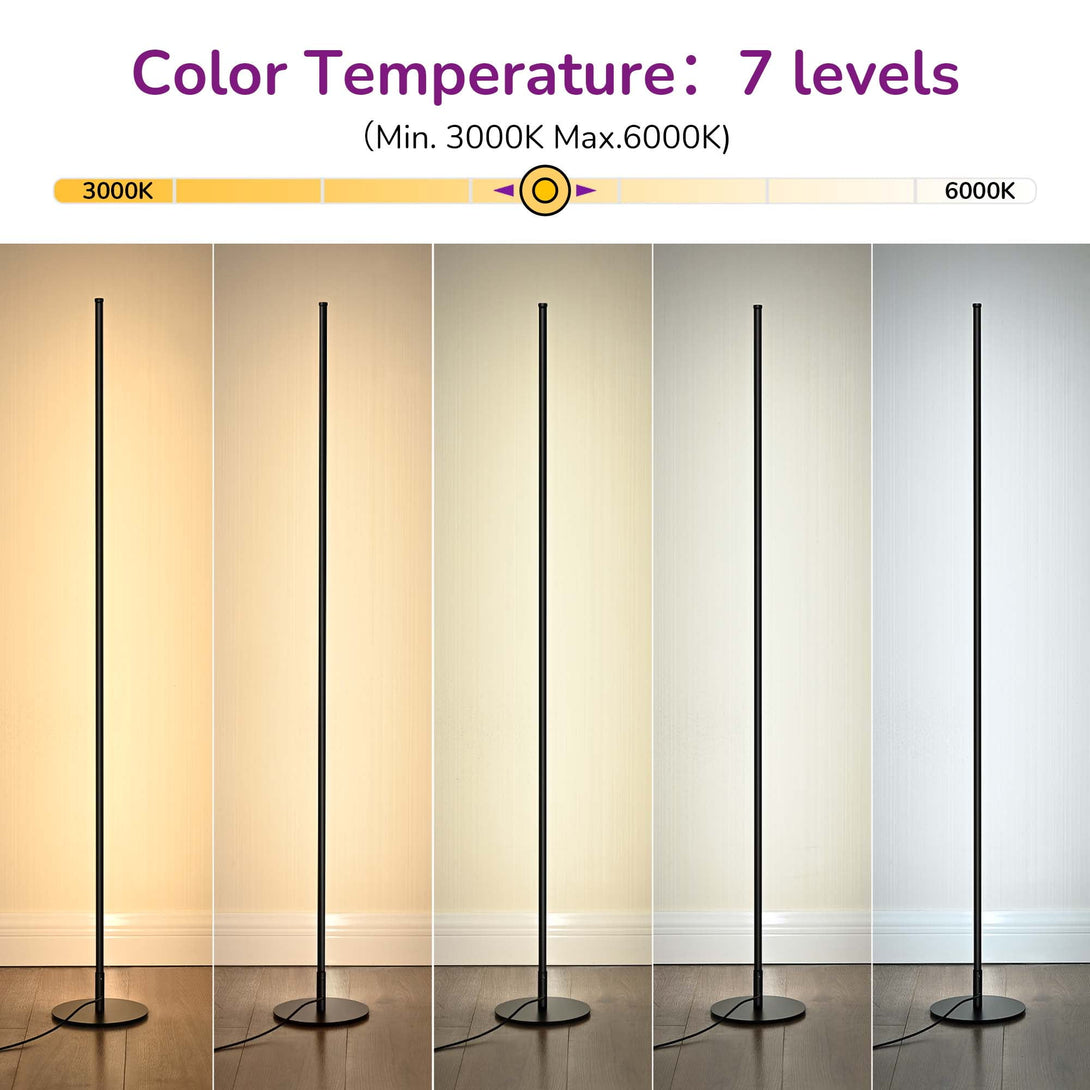 EDISHINE LED Corner Modern Floor Lamp with Remote Set of 2, Minimalist Dimmable Mood Lighting, 7CCT, Standing Clearance Floor Lamps for Living Room, Bedroom, Office, Black