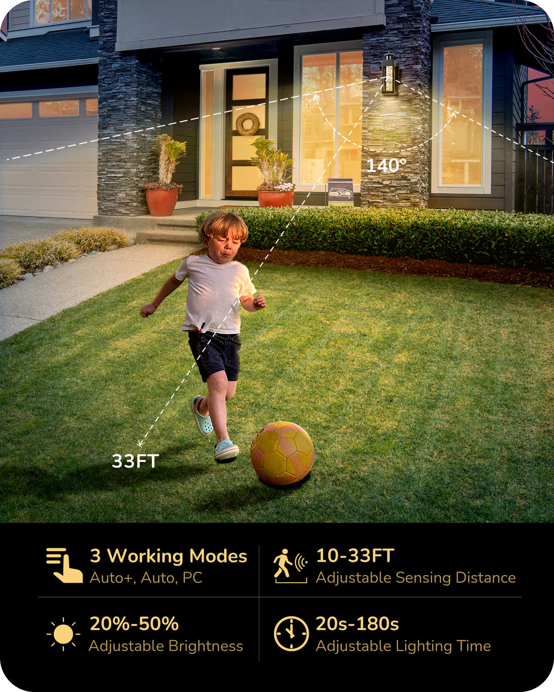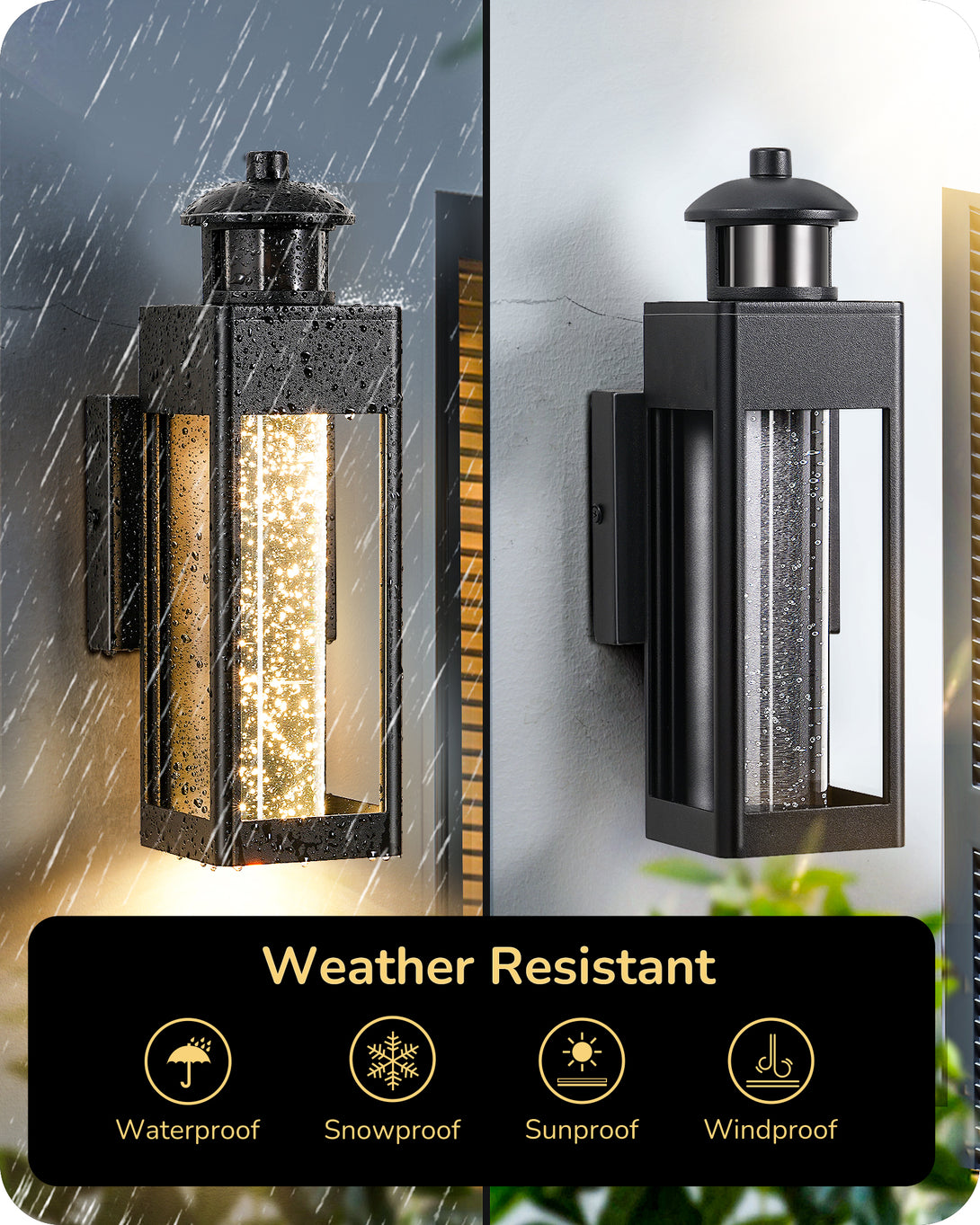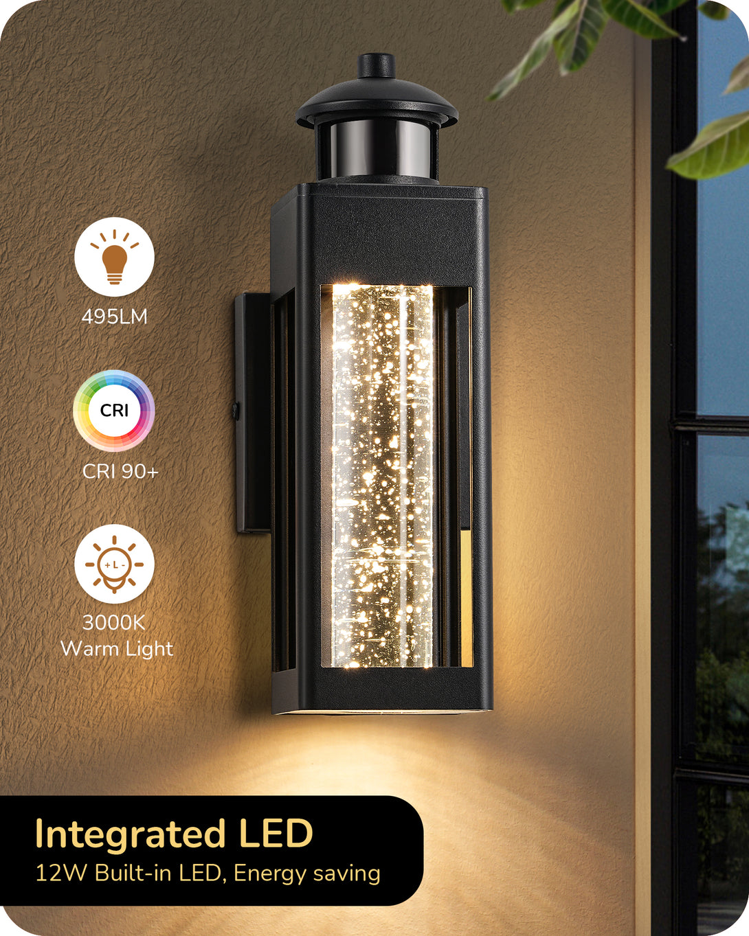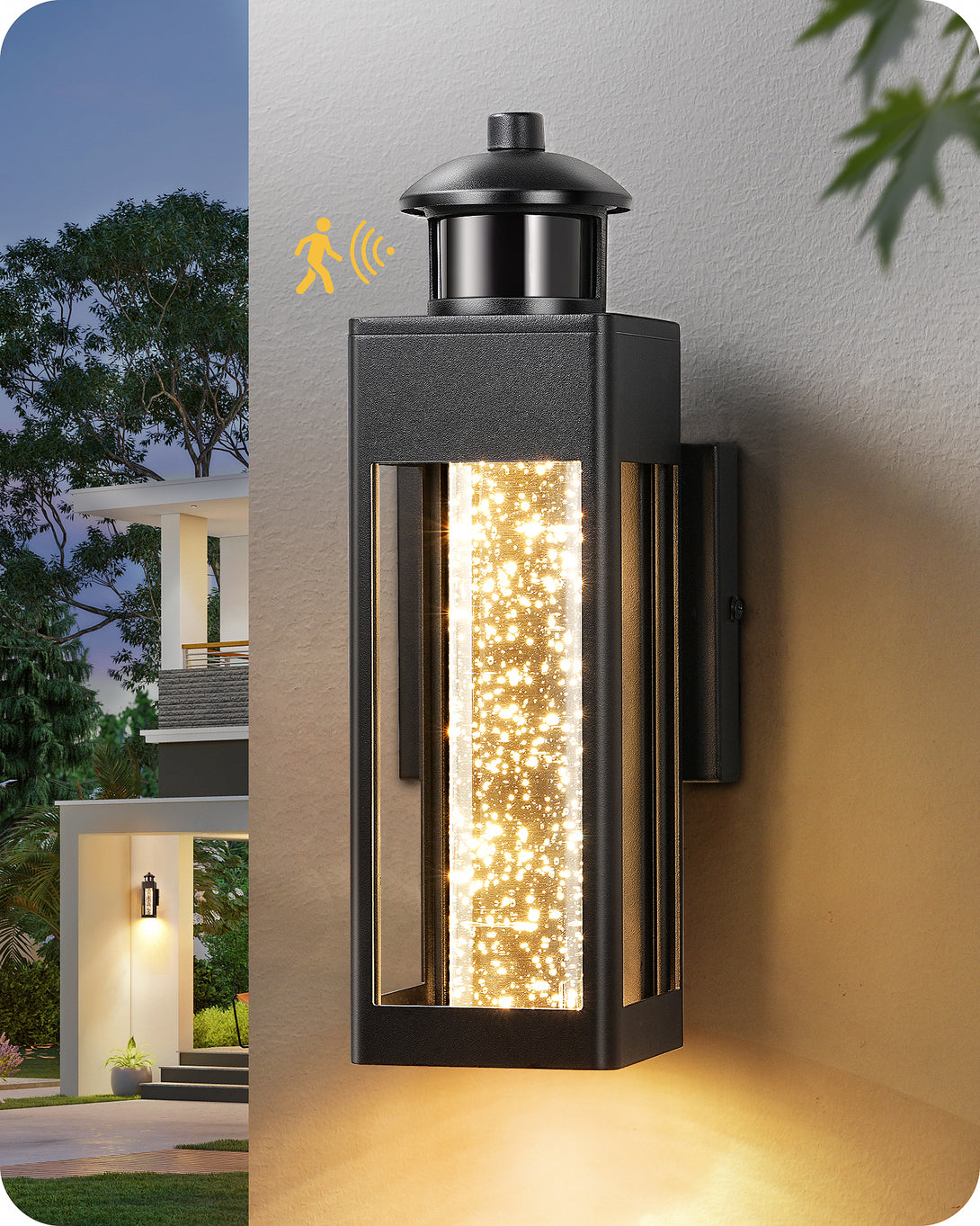 LED Motion & Dusk-to-Dawn Outdoor Wall Lantern – 3 Lighting Modes, Warm White