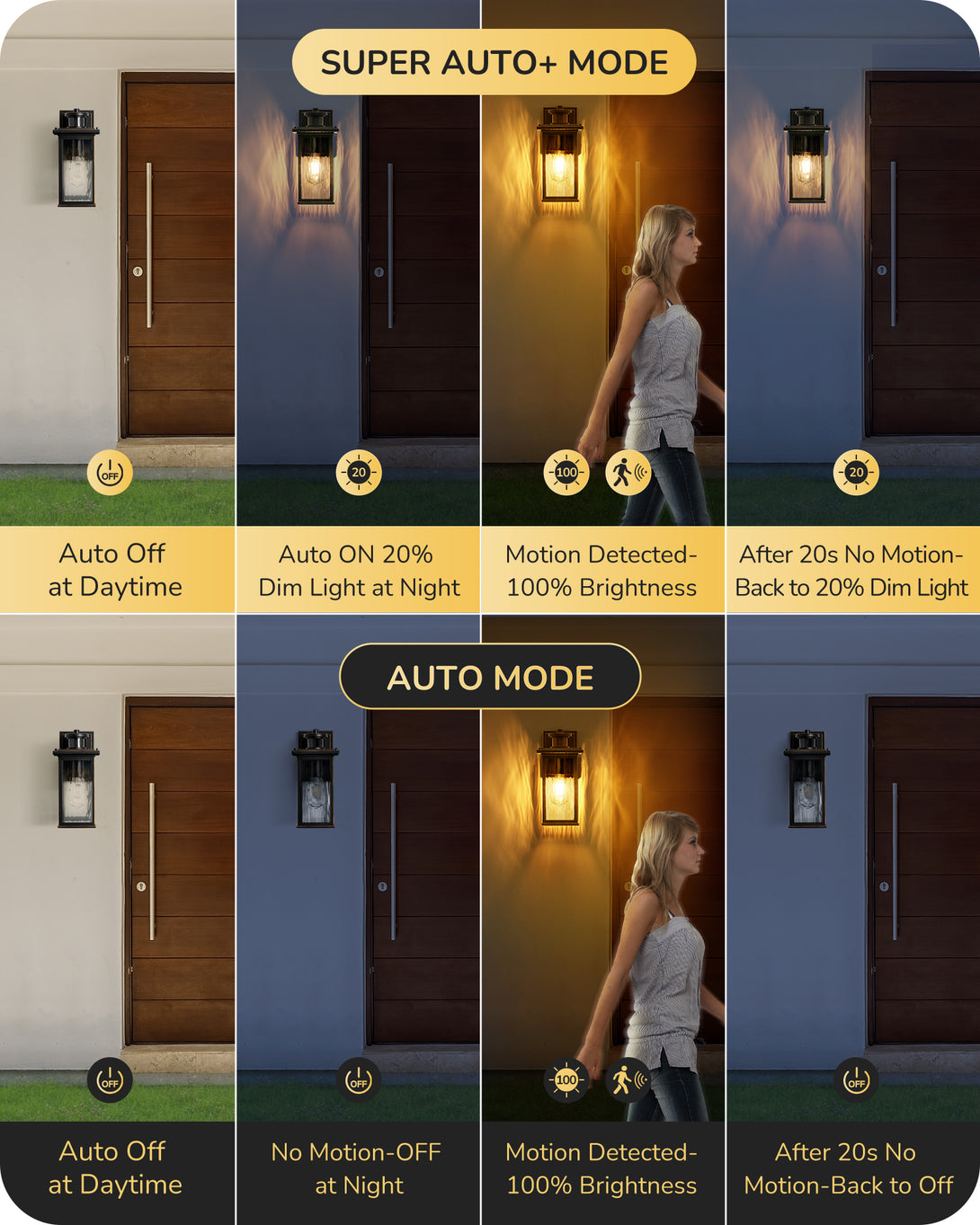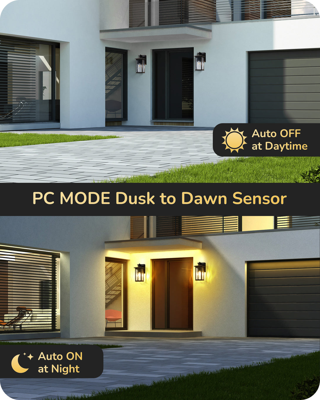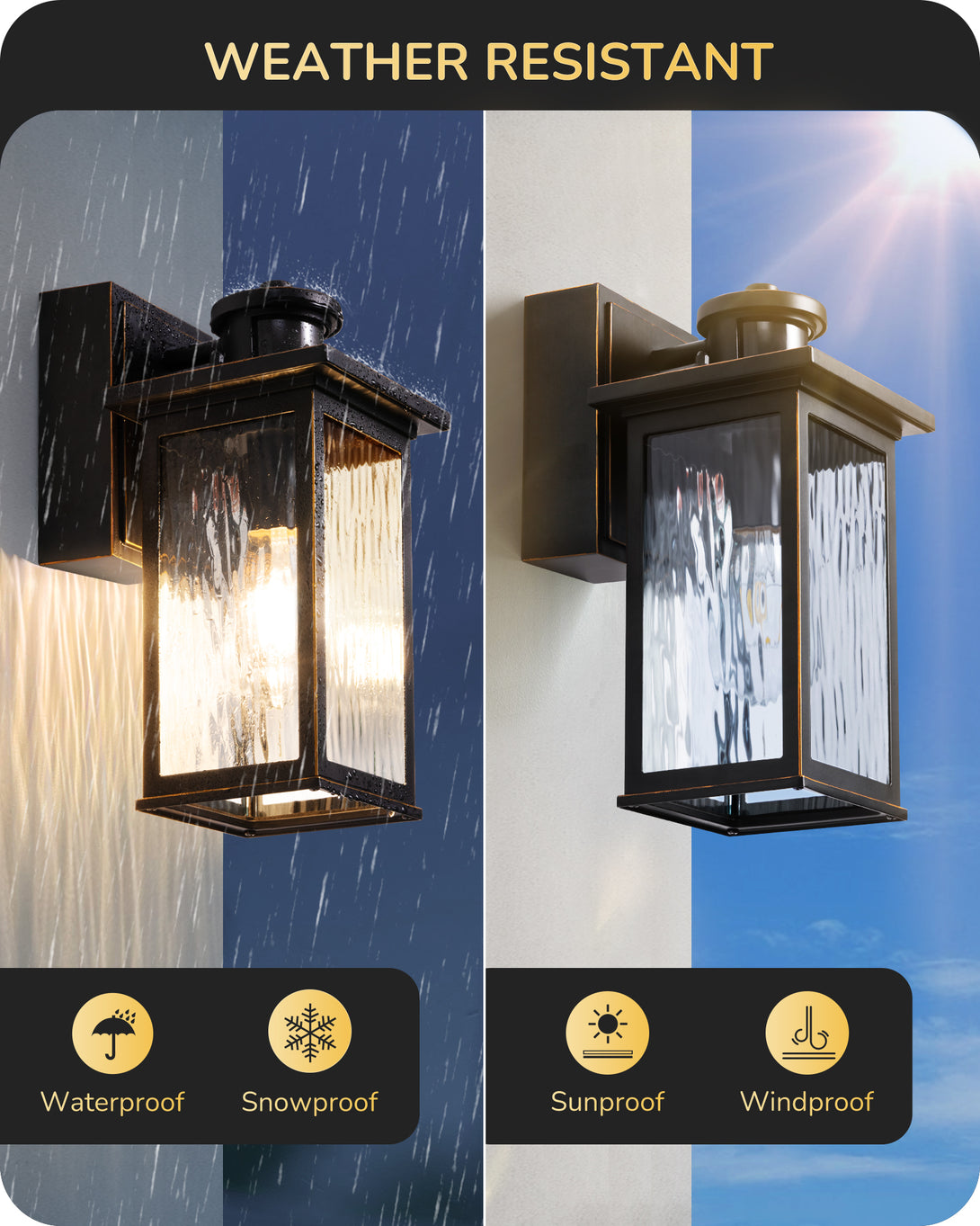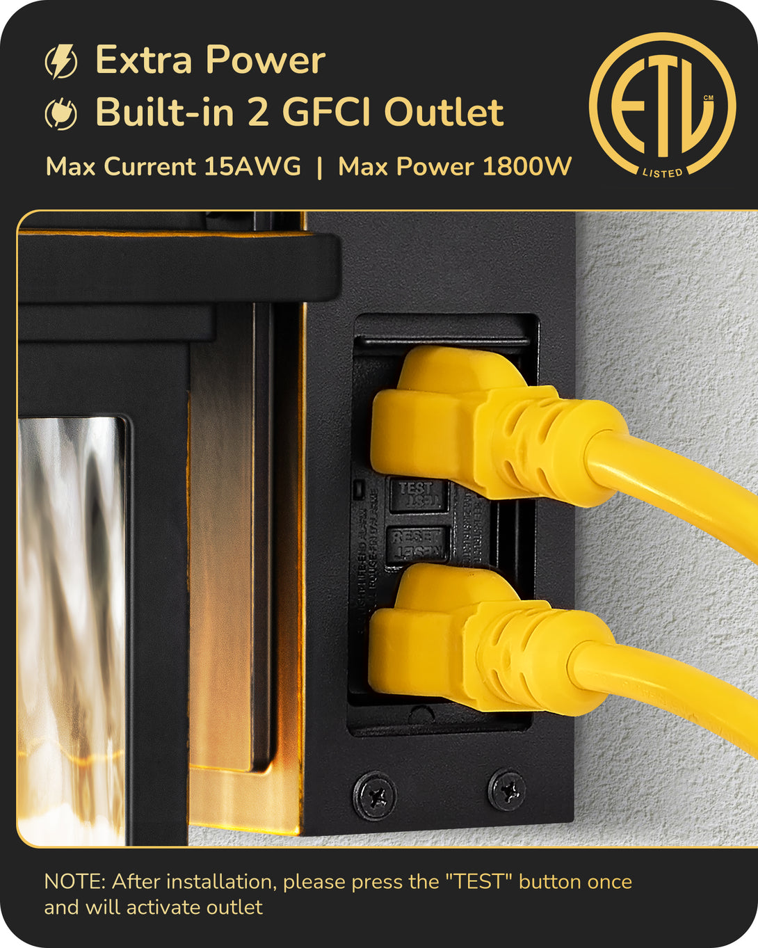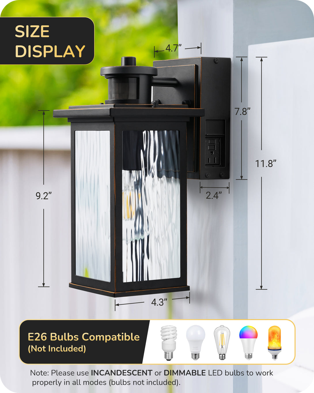EDISHINE Outdoor Wall Light with GFCI Outlet, Motion Sensor Exterior Lighting Fixture with Water Ripple Glass, Waterproof Dusk to Dawn Outdoor Wall Sconce for Porch Front Door Garage Patio