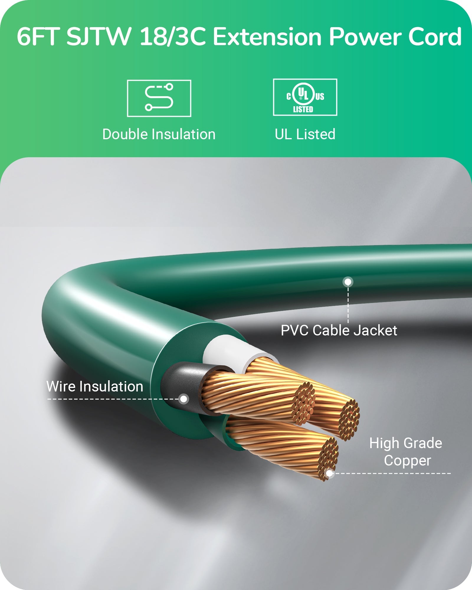 Our spot lights outdoor plug in comes with a 6ft SJTW 18/3C extension cord, providing ample flexibility for installation without an extra cord; the 3-core wire provides double insulation protection, and making outdoor grounding safer