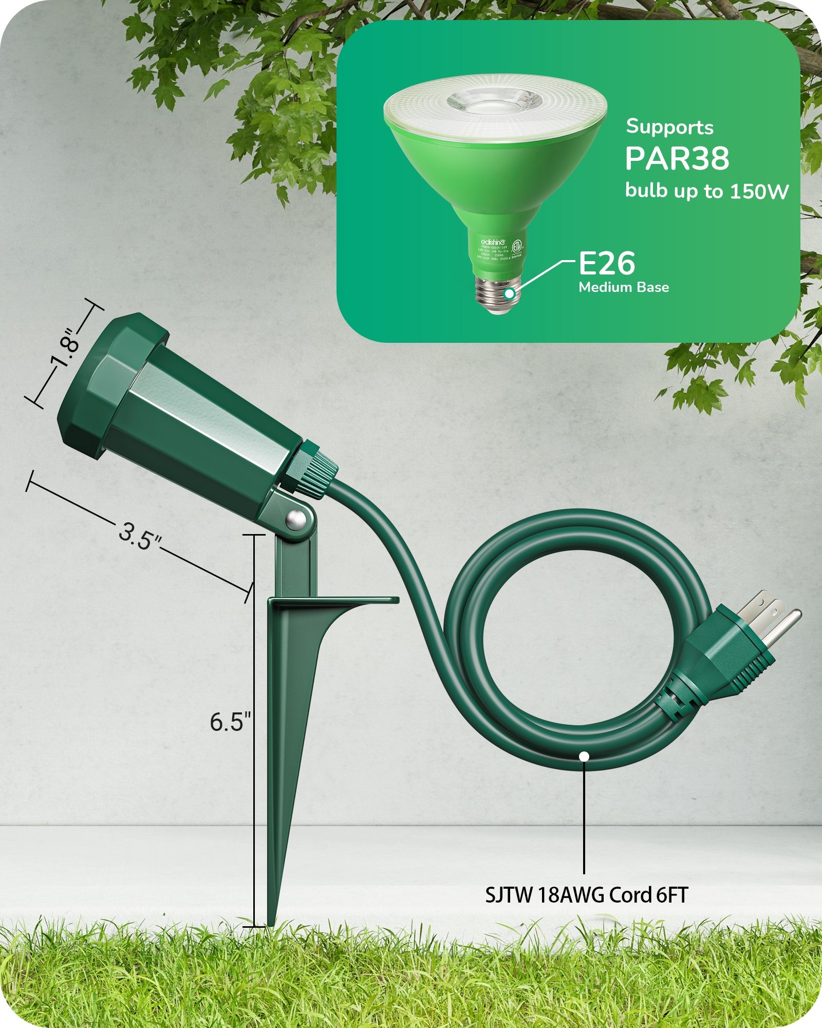 EDISHINE 120V Spotlights Outdoor Halloween, Plug in LED Flood Lights, Waterproof Landscape Lights Socket (2 Pack)-HGSL11B