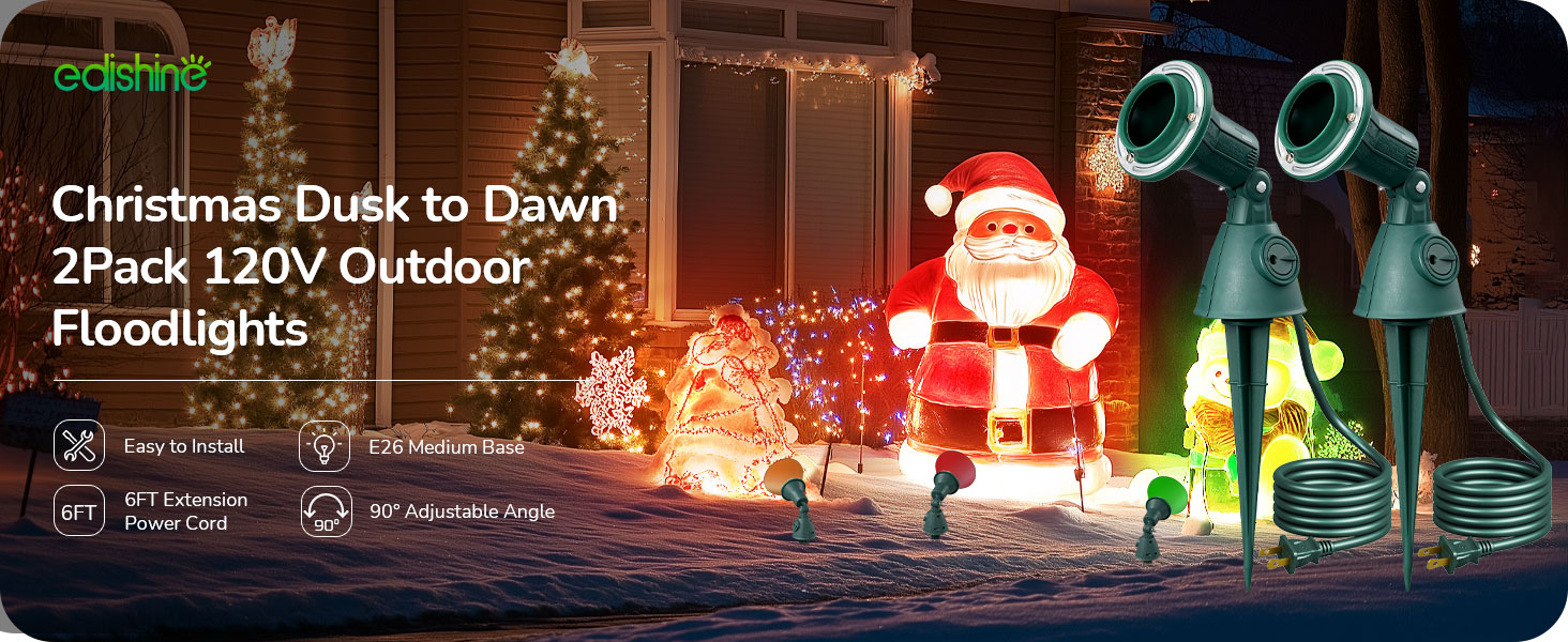 EDISHINE 120V Outdoor Landscape Light Socket for Holiday (2 Pack) -HGSL16A